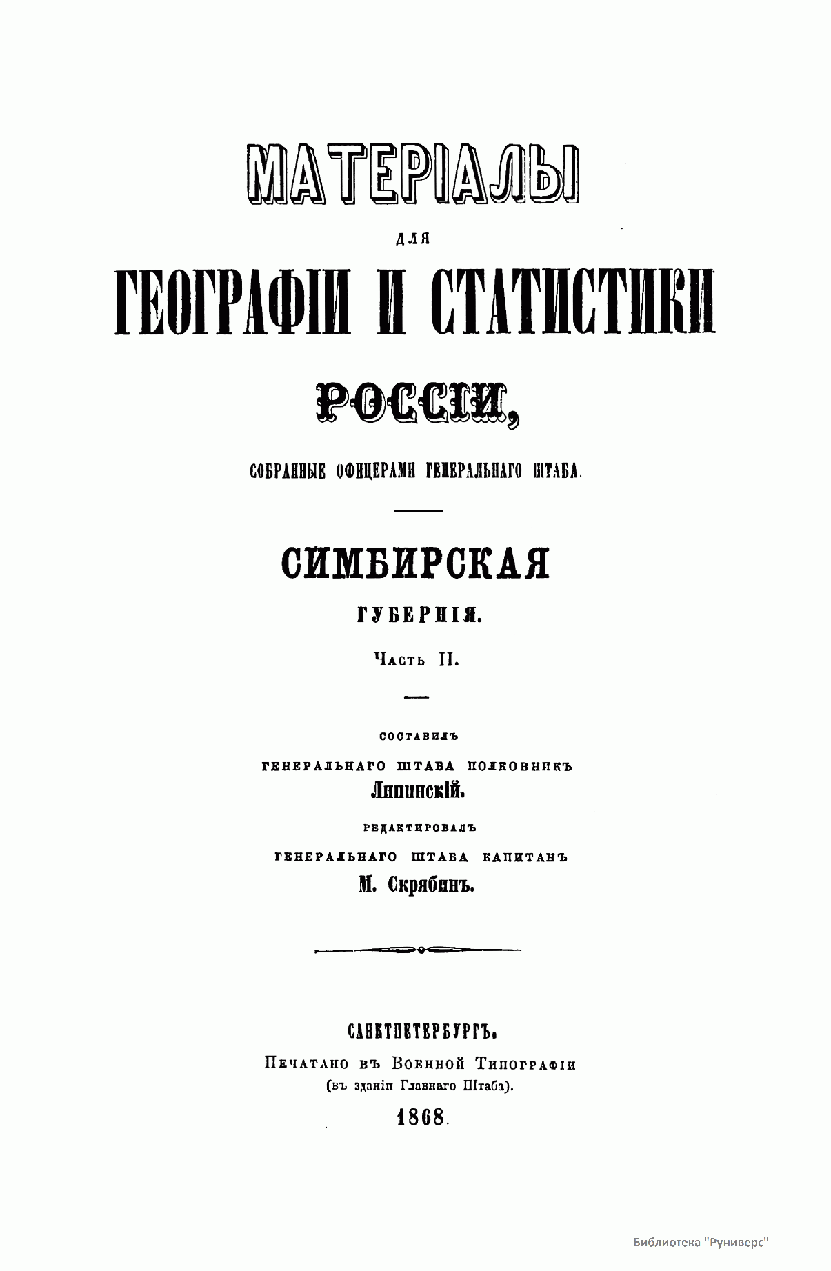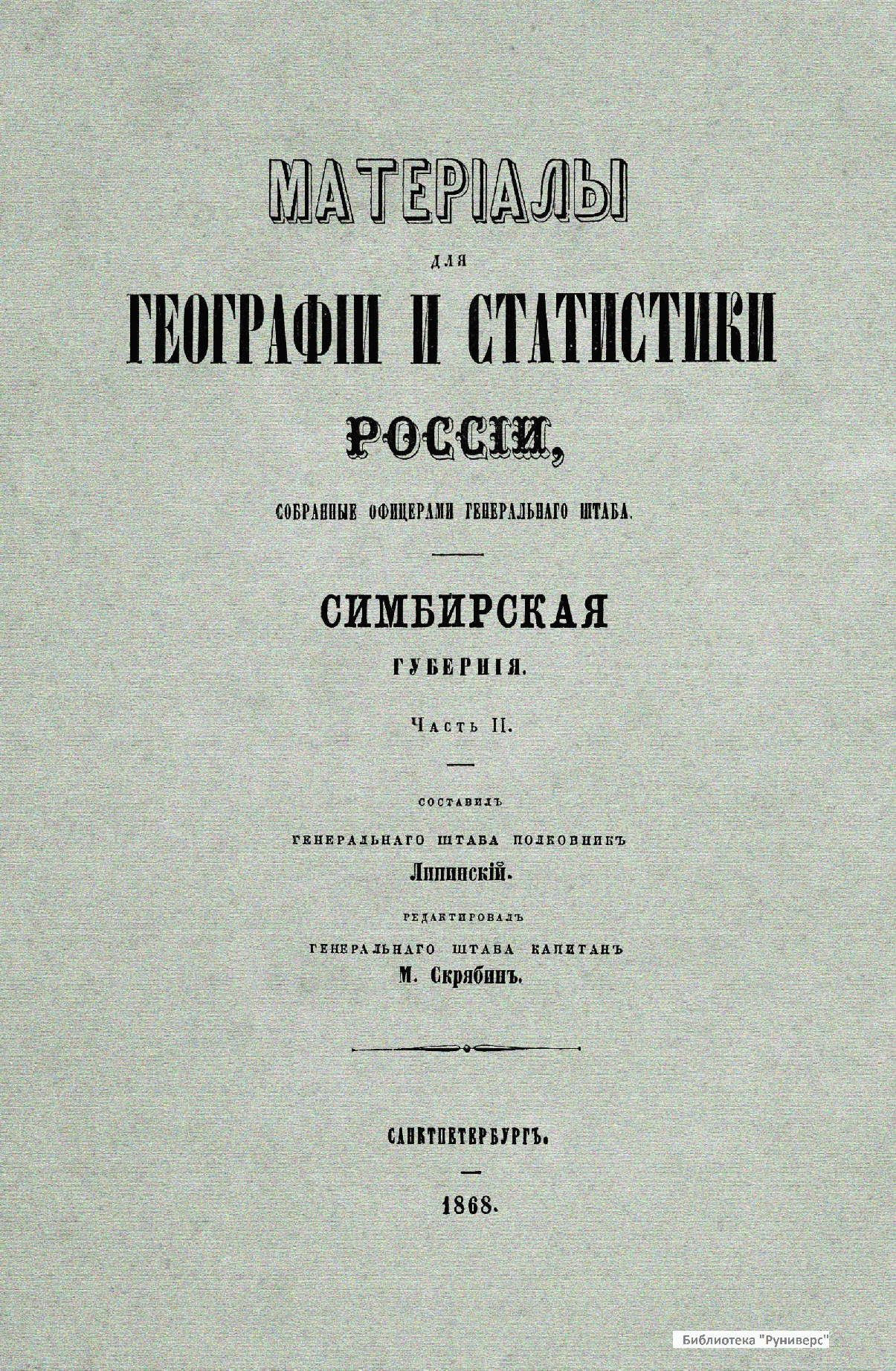 Матерiалы для географiи и статистики Россiи, собранные офицерами Генеральнаго штаба. Симбирская губернiя. Часть 2