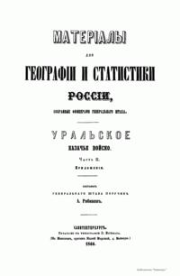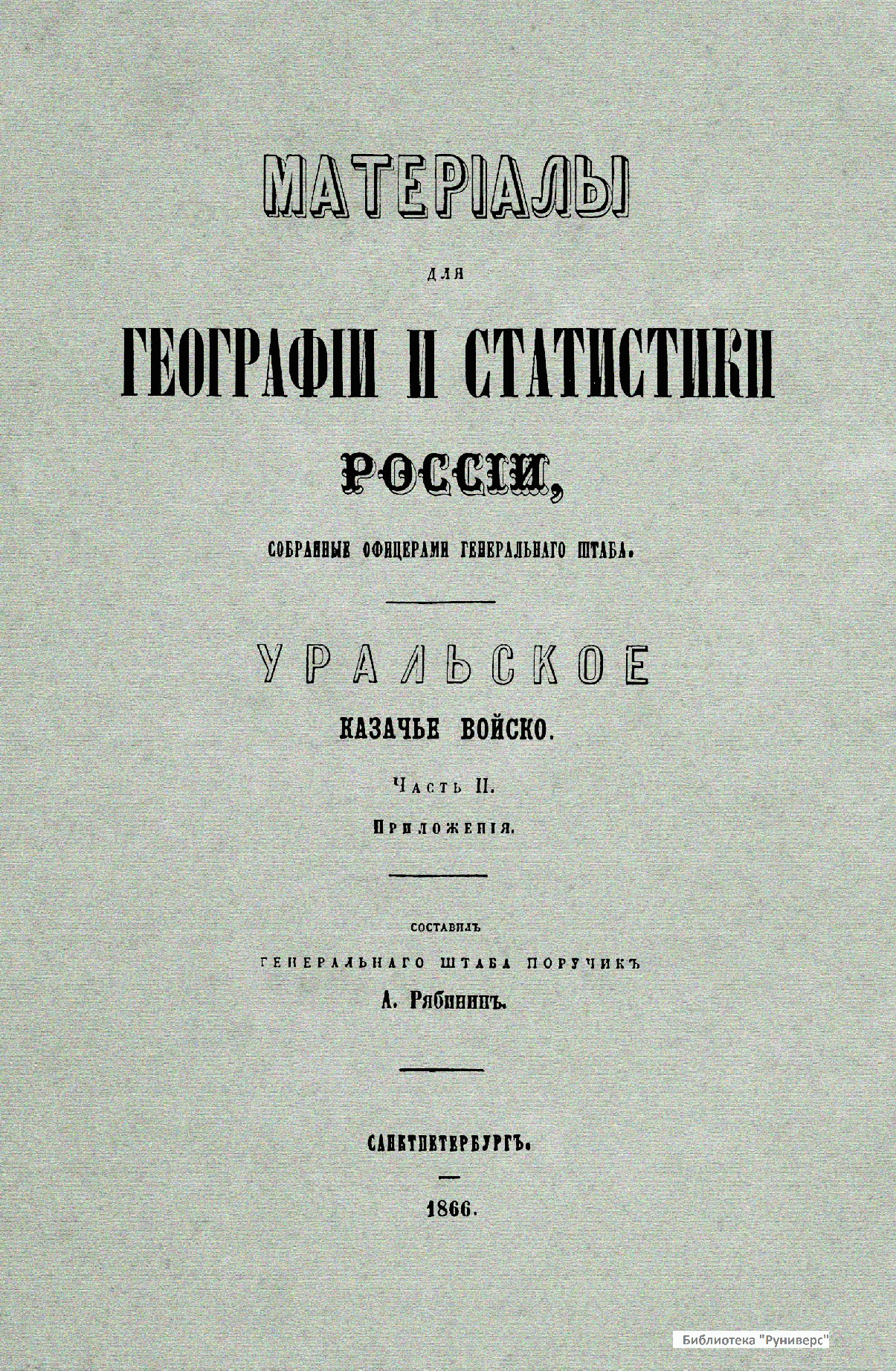 Матерiалы для географiи и статистики Россiии, собранные офицерами Генеральнаго штаба. Уральское казачье войско. Часть 2. Приложенiя