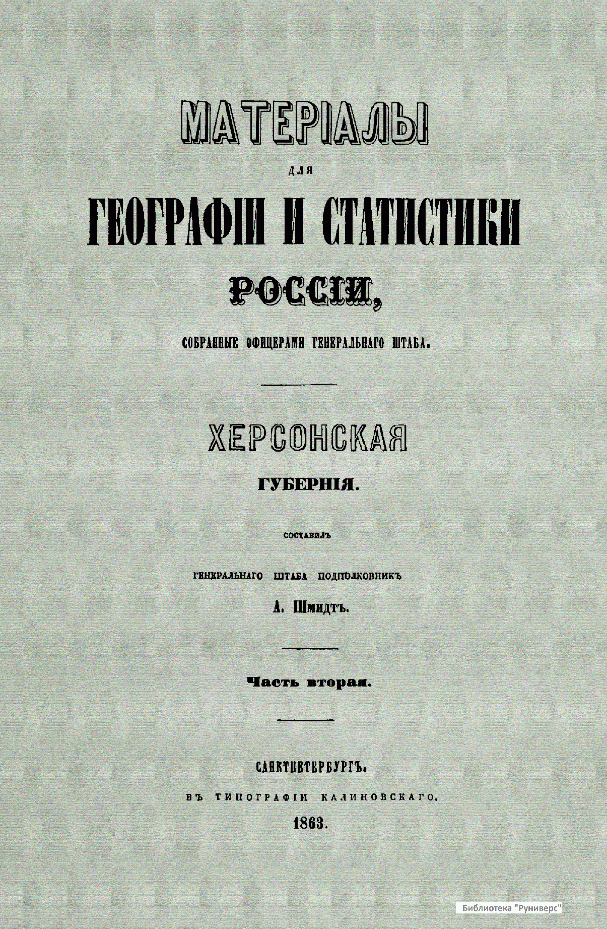 Матерiалы для географiи и статистики Россiи, собранные офицерами Генеральнаго штаба. Херсонская губернiя. Часть 2