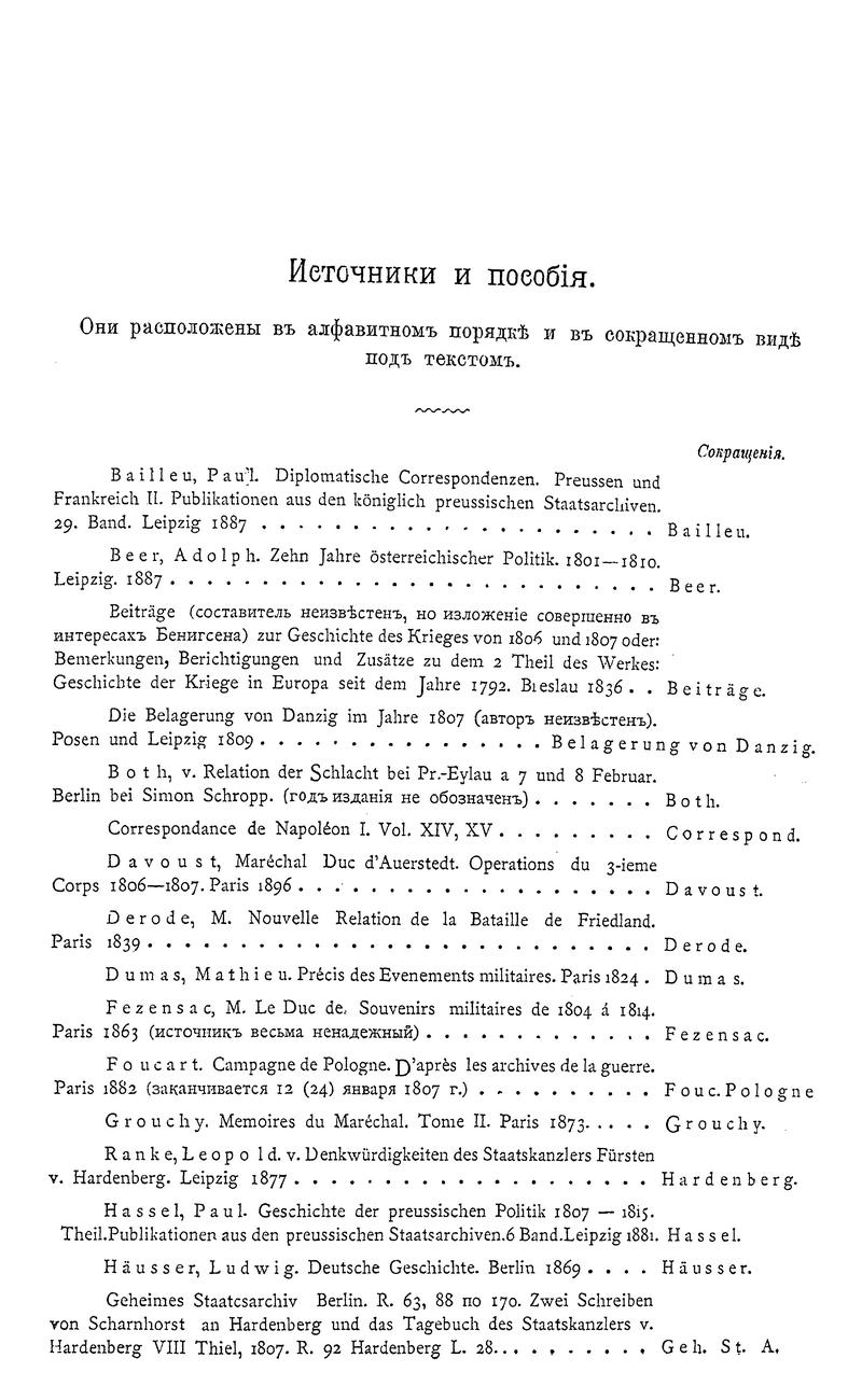 Перевод на русский язык фундаментального многотомного военно-исторического труда по истории войны русско-прусского союза с Наполеоном в 1806-1807 годах, написанного немецким военным историком Оскаром фон Леттов-Форбеком, был подготовлен при штабе Варшавского военного округа под руководством генерал-лейтенанта Генерального штаба, профессора военной истории академии Генерального штаба А.К. Пузыревского, получив при этом одобрение Военного министерства. Деятельность А.К. Пузыревского как одного из выдающихся военных педагогов и просветителей получила в России широкую известность. Представленное им исследование немецкого военного писателя, снабженное многочисленными картами и схемами боевых действий, сих пор представляет научный интерес. Одним из важнейших достоинств данного исследования является то, что автор широко использовал богатейший документальный массив как прусских, так и французских военных архивов, создав объективную картину одного из сложнейших этапов эпохи наполеоновских войн. Русско-прусско-французская война 1806-1807 гг. война между 4-й коалицией европейских держав (Великобритания, Россия, Пруссия, Саксония, Швеция) и наполеоновской Францией. Фактически эти две кампании являлась продолжением русско-австро-французской войны 1805 г. Не имея общего плана войны, союзники действовали несогласованно, что позволило Наполеону разбить их поочерёдно. Так 2 (14) октября 1806 г. в масштабном сражении под Йеной и Ауэрштадтом французская армия разгромила прусско-саксонские войска, после чего наполеоновские войска оккупировали большую часть Пруссии и 12 (24) октября заняли Берлин. Русская армия в составе трёх корпусов (около 160 тыс. чел.) под командованием генерал-фельдмаршала М. Ф. Каменского сосредоточилась в районе Пултуск, Остроленка, Брест-Литовск, выдвинув передовые отряды к Висле. 16 (28) ноября французские войска заняли Варшаву. Наполеон предпринял попытку окружить главные силы русских войск, но 14 (26) декабря в сражении под Пултуском русские войска сорвали этот план, нанеся поражение корпусу маршала Ж. Ланна. Затем русская армия отошла в район Тыкоцина, а наполеоновские войска расположились на зимние квартиры. 4 (16) января 1807 русская армия под командованием нового командующего генерал-адъютанта Л.Л. Беннигсена начала наступление из района Бялы в Восточную Пруссию с целью не допустить занятия французами Кенигсберга и Пиллау и нанести поражение изолированным корпусам Нея и Бернадота. Наполеон, узнав о продвижении русских войск, 20 января (1 февраля) направил главные силы на север, пытаясь обойти левый фланг русской армии и отрезать экспедиционные силы русских от России. Русские войска, ведя арьергардные бои, отошли к Прейсиш-Эйлау, где 26–27 января (7– 8 февраля) произошло встречное упорное сражение, в котором русские войска успешно отразили удары наполеоновской армии. 2 (14) июня 1807 г. в сражении под Фридландом русская армия, проявив чудеса героизма и мужества, вследствие неадекватных мер командования, была вынуждена отступить. В июне 1807 г. состоялось свидание Наполеона с императором Александром I в Тильзите и был подписан тяжёлый для России вынужденный союзный договор с наполеоновской Францией. Все эти военно-исторические события детально изложены в данном труде.