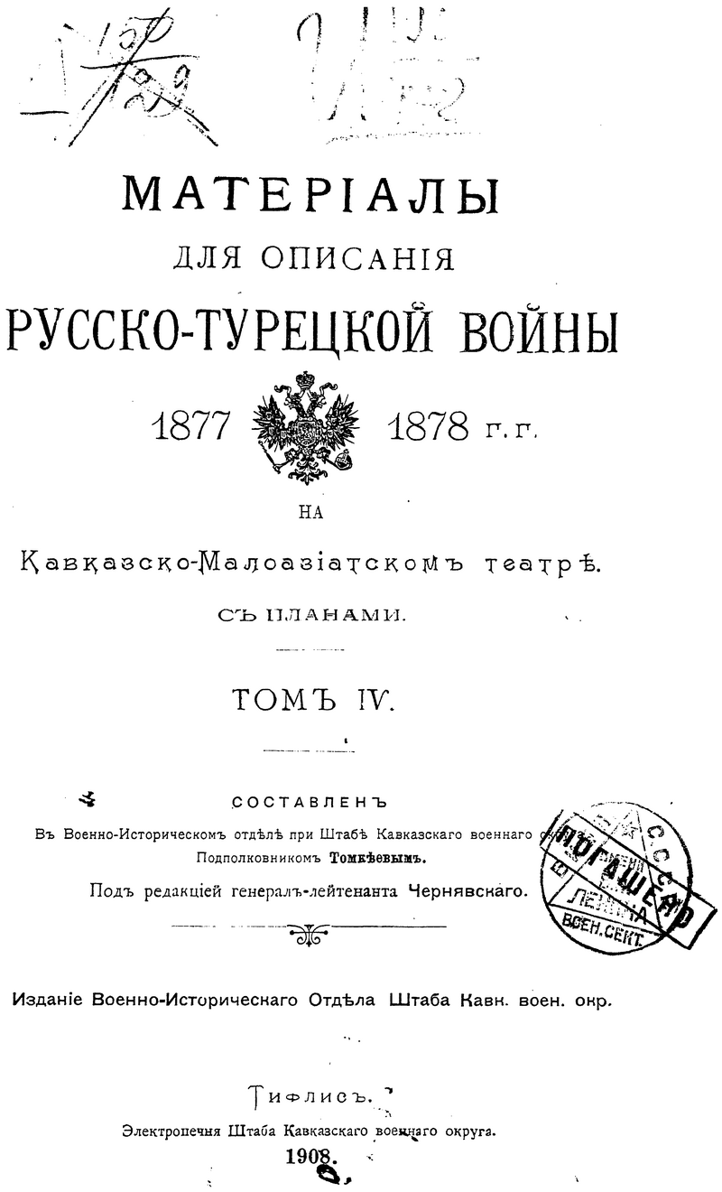 Материалы для описания русско-турецкой войны 1877-1878 гг. на Кавказско-Малоазиатском театре. Том IV