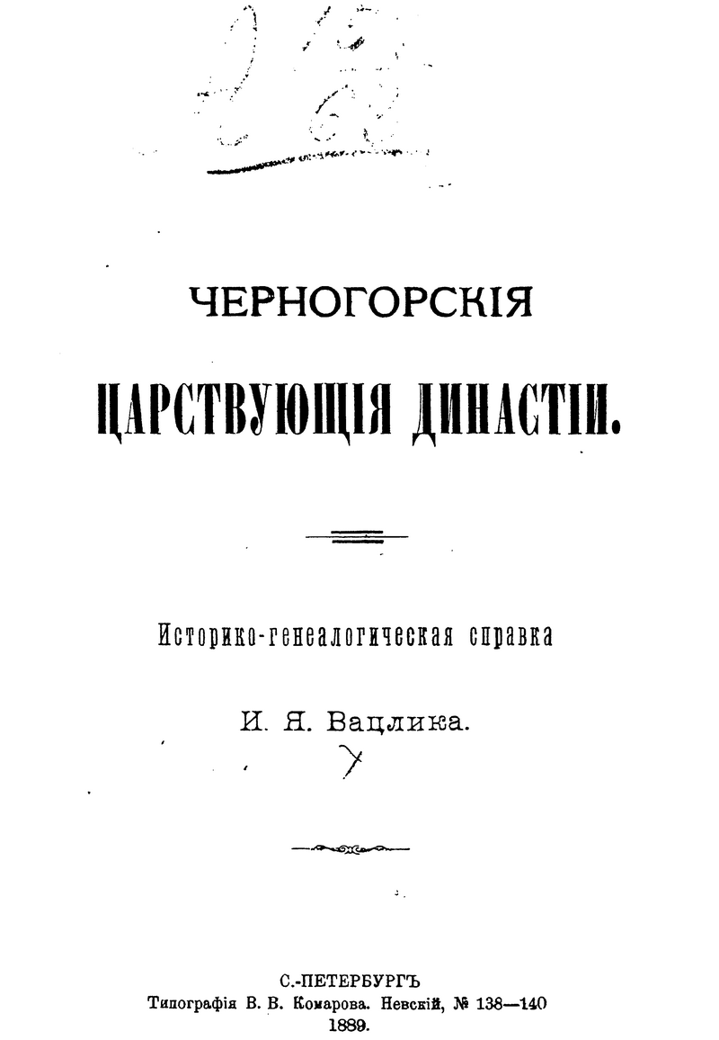 Черногорский народ и его династии с древнейших времён выделялись в общей сербской истории. В книге содержатся краткие сведения о династии Бальшичей (1356 – 1421); династии князей Черноевичей (1423 – 1516); о Черногории, управляемой владыками-митрополитами (1499 – 1695); о царствующей династии Петровичей-Негошей (1697 – 1851); о Черногории под властью светских князей из дома Петровичей-Негошей (с 1851).