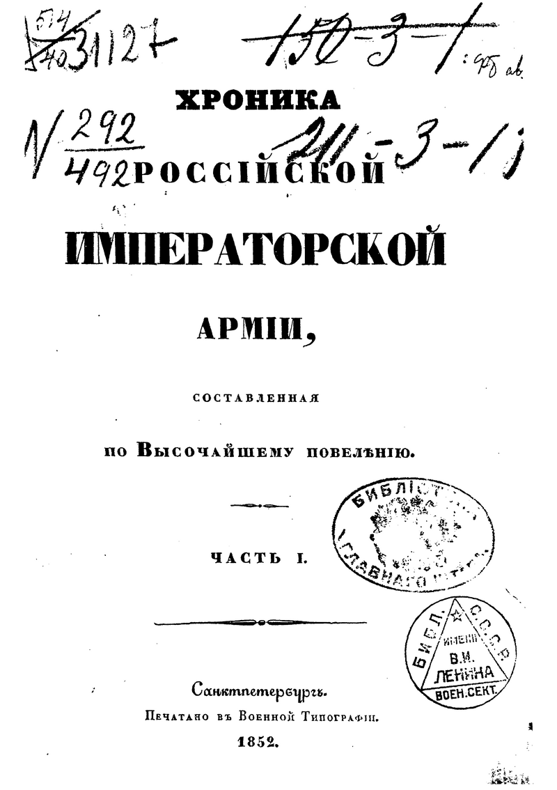 Важнейший энциклопедический справочник, содержащий детальную историю всех российских войсковых частей. Составлен в правление Николая I.
