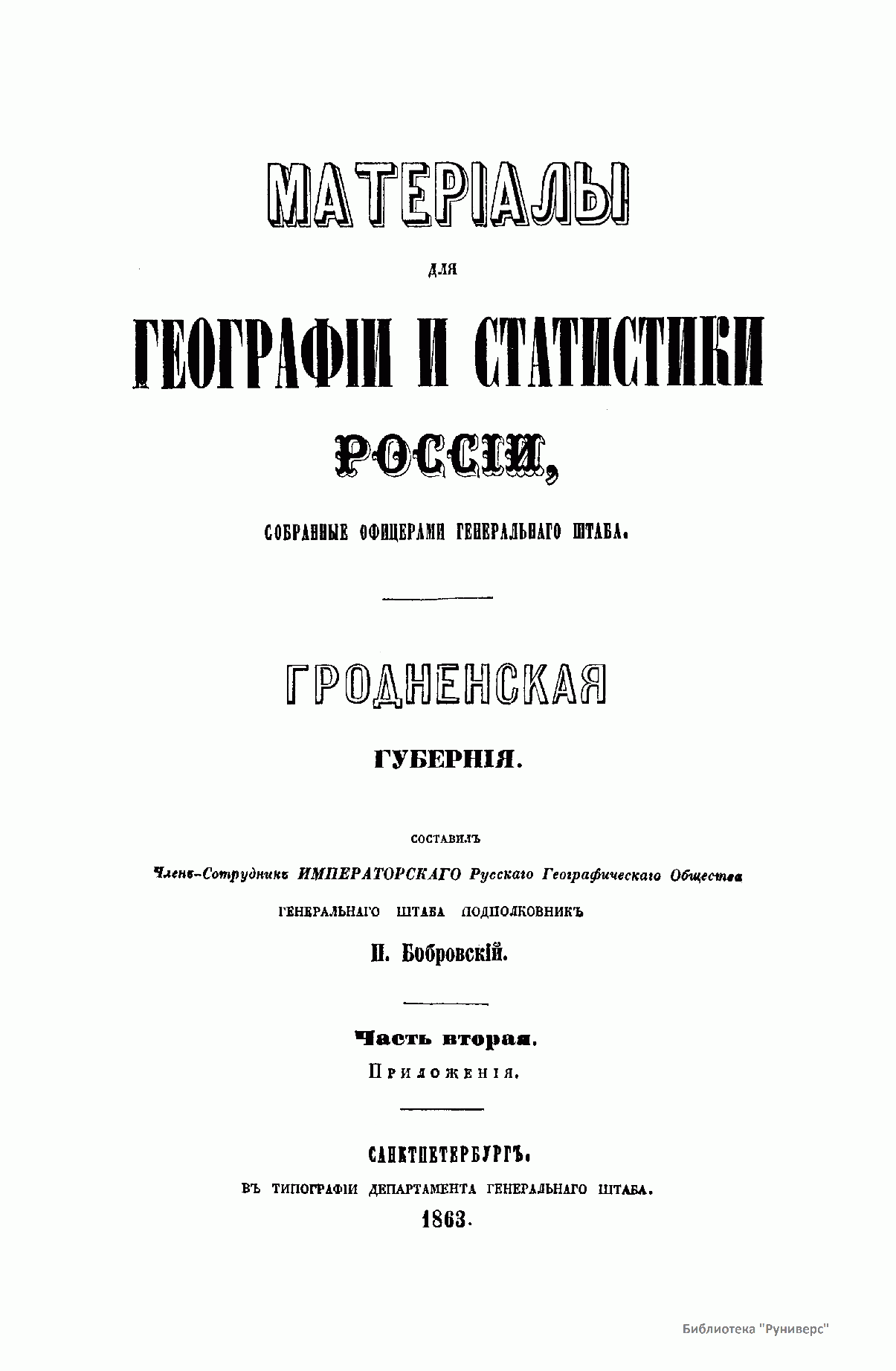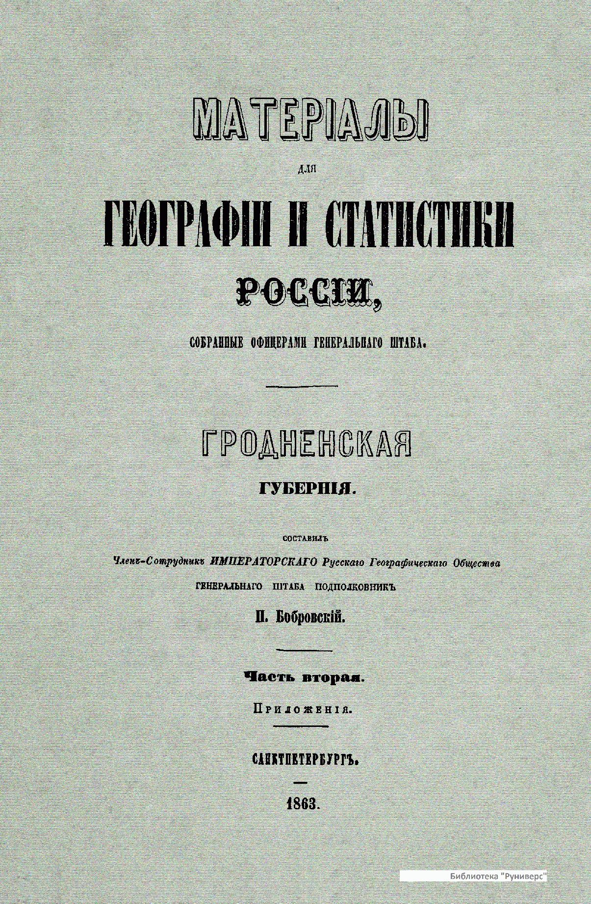 Матерiалы для географiи и статистики Россiи, собранные офицерами Генеральнаго штаба. Гродненская губернiя. Часть 2. Приложенiя