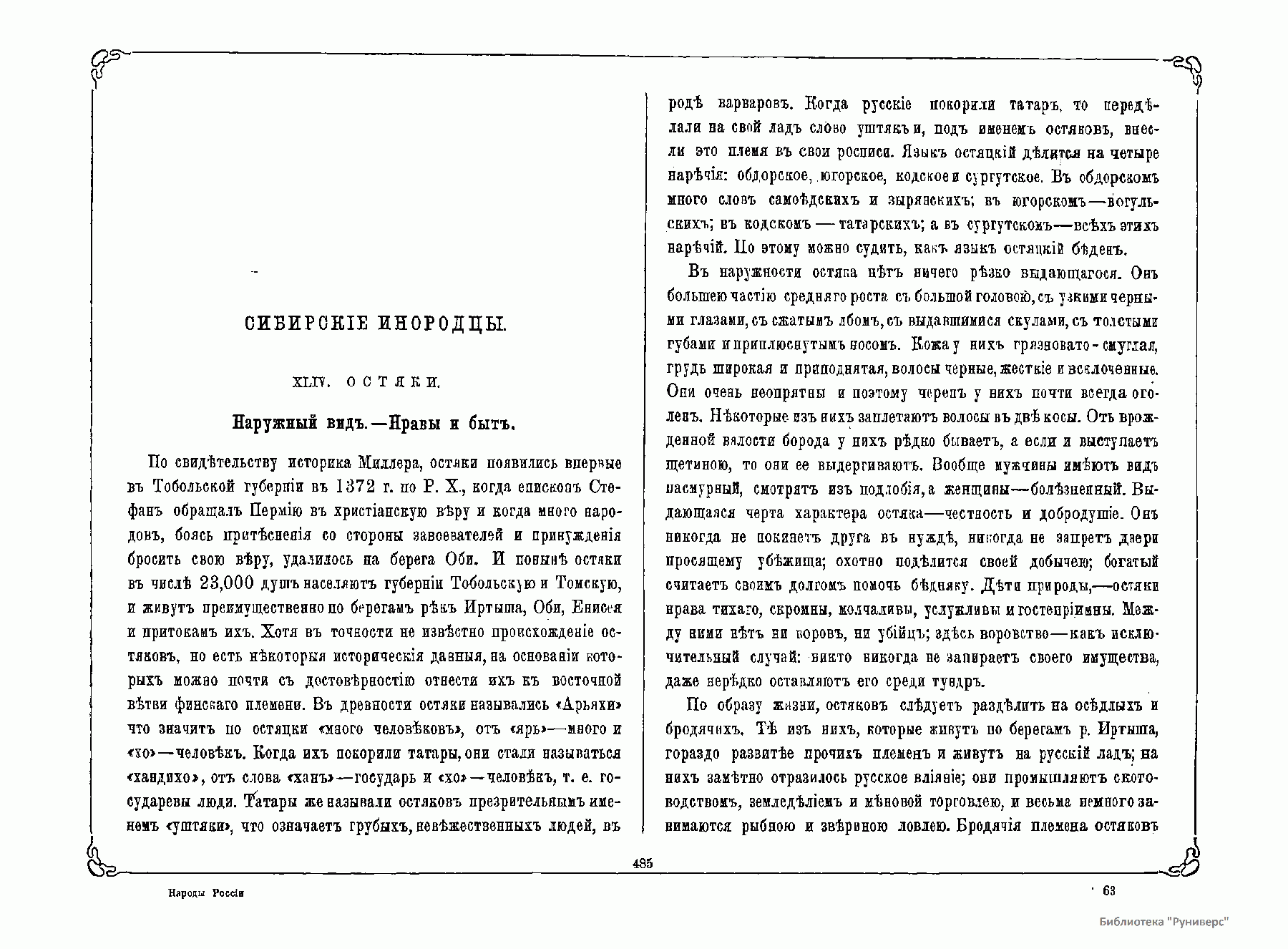 Масштабное научно-популярное исследование «Народы России», подготовленное известными российскими этнографами в период либеральных реформ Александра II, в эти годы пользовалось значительным читательским интересом. Это хорошо иллюстрированное обзорное издание, охватывающее необъятные географические и этнокультурные пространства, быт и нравы ногочисленных народов и народностей (выделено 45 основных народностей и народов), проживавших в Российской империи, и поныне представляется весьма познавательной книгой, далеко не потерявшей своей научно-практической значимости.