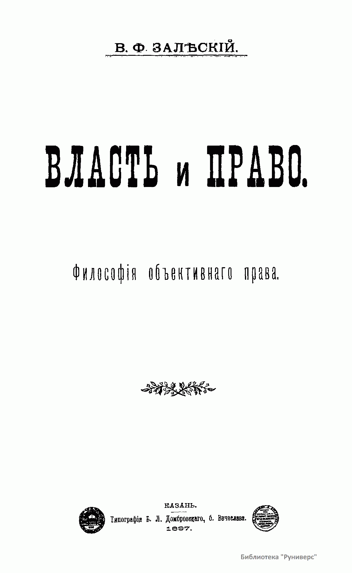 Книга посвящена выявлению сущности права и обстоятельств его происхождения, его соотношению со сферой духовности, прежде всего, с нравственностью. Занимаясь на протяжении многих лет философией права автор попытался показать читателям, как на смену исторической школе приходит утилитарно-эволюционная теория права. Таким образом В.Ф.Залесский предпринимает попутку детального описания смены парадигм, видя, что вместо прежнего «принципа свободы воли», доминировавшему в школе философии права, утверждается «принцип пользы».