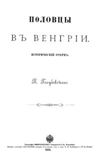 Краткий исследовательская работа, которую автор первоначально задумывал как приложение к своему исследованию «Печенеги, торки и половцы до нашествия татар», 1884. В брошюре собраны редкие сведения о переселении и жизни половецких кочевников в Венгрии.