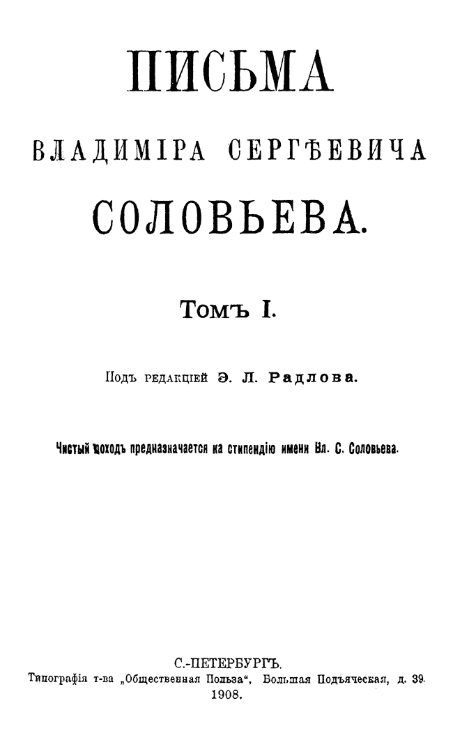 Письма Владимира Сергеевича Соловьева
