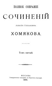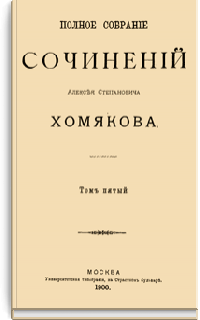 В изданное в 1900 г. расширенное и дополненное собрание сочинений А.С. Хомякова, создателя «славянофильства», помимо философских и публицистических работ включены его поэтические произведения, стихотворные трагедии "Ермак" и "Дмитрий Самозванец» , а также письма разных лет.