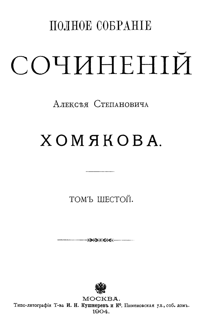 Полное собрание сочинений Алексея Степановича Хомякова. Том VI