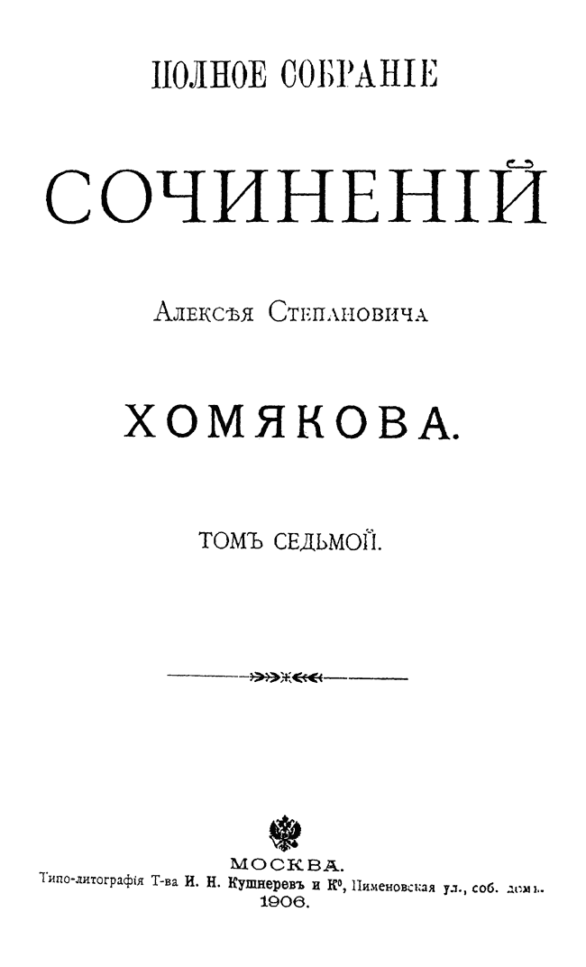 Полное собрание сочинений Алексея Степановича Хомякова. Том VII