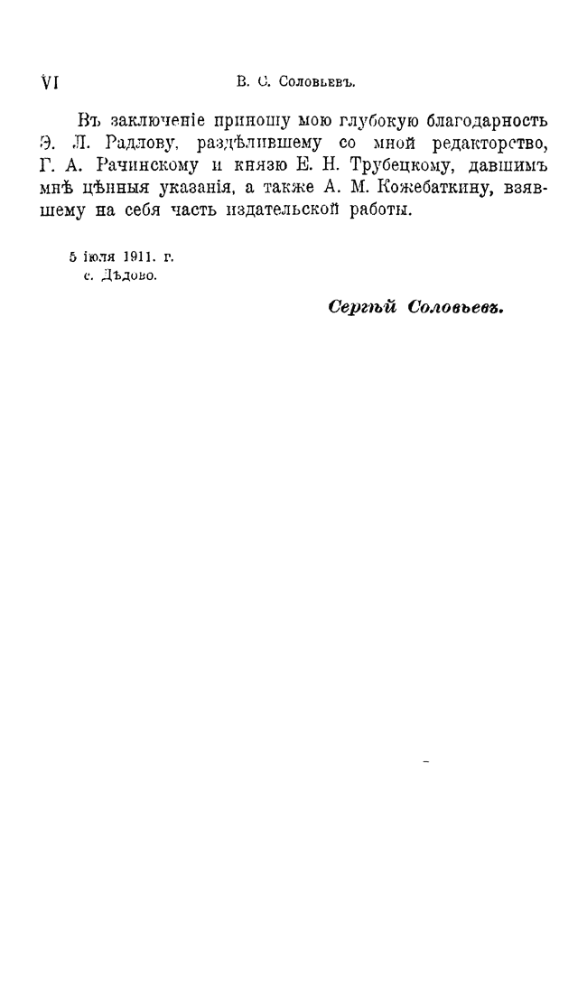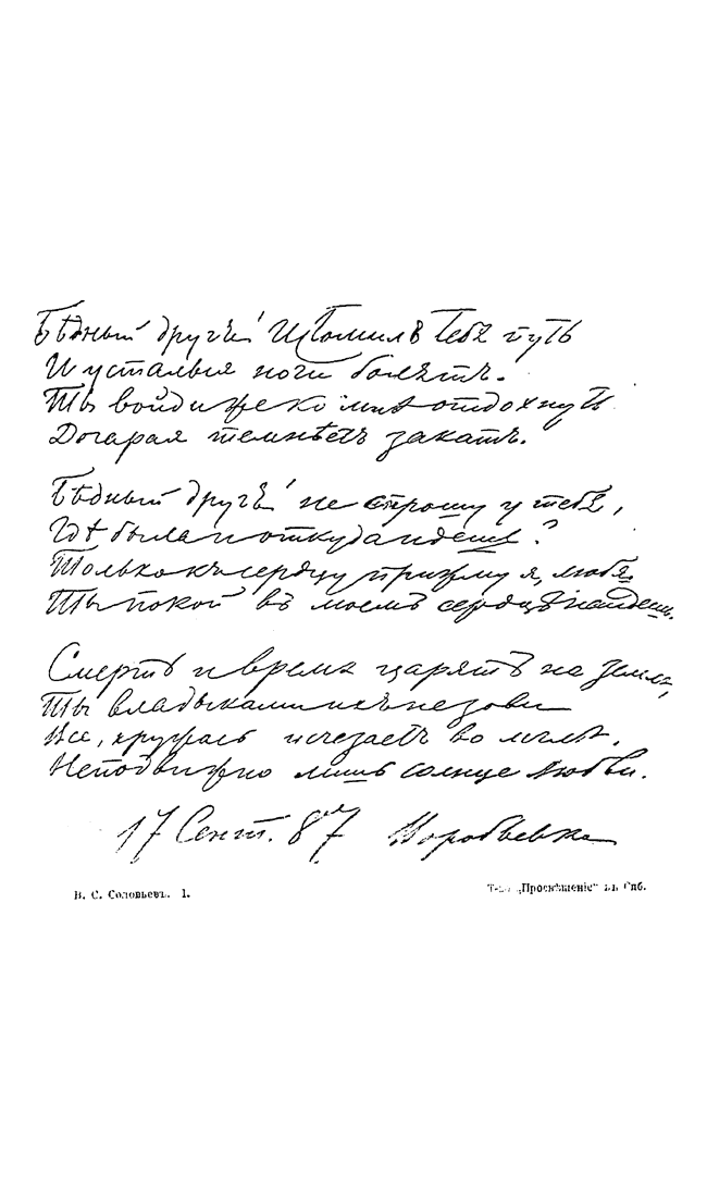 В первые два тома вошли его философские сочинения 1873-1880 гг., в третий – богословские 1877-1884 гг., в четвертом собраны работы, посвященные Церкви 1883-1887 гг., в пятом – публицистические произведения, включая «Национальный вопрос в России», том шестой объединяет критические сочинения, работы по эстетике и труды исторического характера, седьмой том посвящен нравственной философии, а в заключительных томах представлены сочинения последних лет жизни Соловьева.