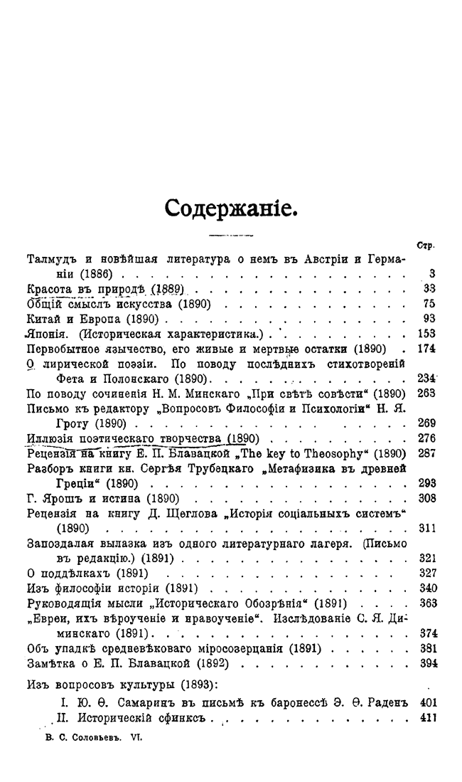 В первые два тома вошли его философские сочинения 1873-1880 гг., в третий – богословские 1877-1884 гг., в четвертом собраны работы, посвященные Церкви 1883-1887 гг., в пятом – публицистические произведения, включая «Национальный вопрос в России», том шестой объединяет критические сочинения, работы по эстетике и труды исторического характера, седьмой том посвящен нравственной философии, а в заключительных томах представлены сочинения последних лет жизни Соловьева.