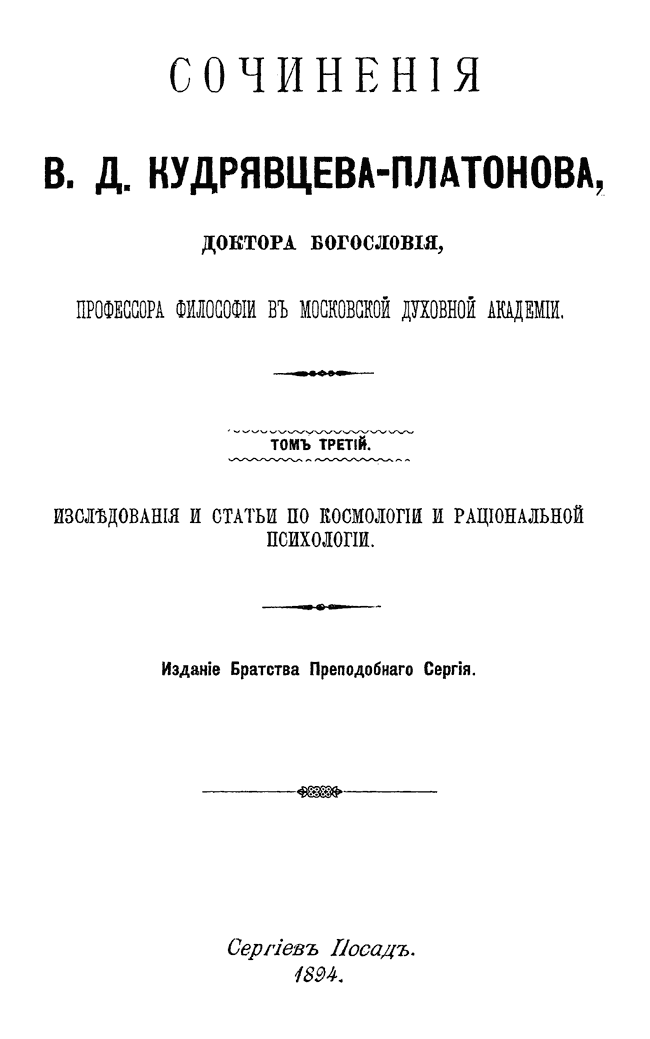 Сочинения В.Д. Кудрявцева-Платонова. Том III. Выпуск 3