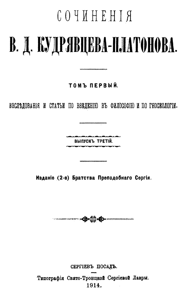 Сочинения В.Д. Кудрявцева-Платонова. Том I. Выпуск 3.