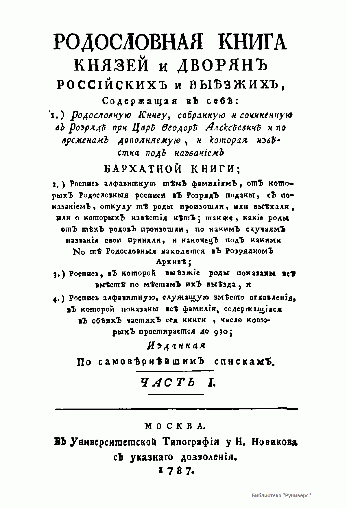 Родословная книга Князей и Дворянъ россiйскихъ и выѣзжихъ