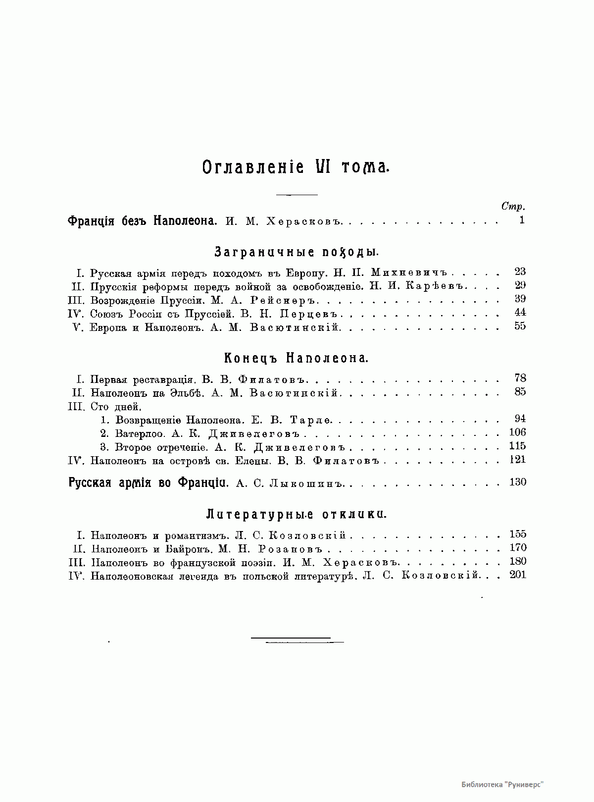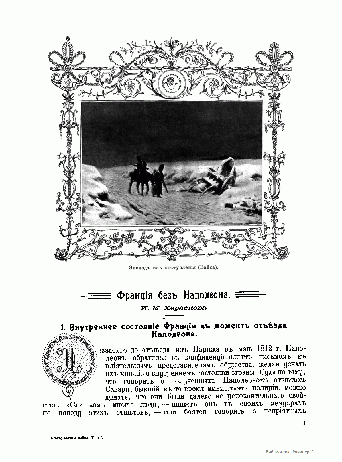 Настоящее научное издание – плод кропотливого коллективного труда Исторической комиссии, которая поставила перед собой цель дать объективную картину событий. Составляя план книги, авторы руководствовались следующими соображениями. Отечественная война 1812 года – один из самых драматических и вместе с тем самых значительных по последствиям моментов русской истории. Только поставленная в рамки европейской истории, изучаемая в тесной связи со всей эпохой, она может быть понята и оценена надлежащим образом. Поэтому книга начинается с эпохи Екатерины II, с франко-русских и вообще международных отношений ее времени, с первых столкновений революции с Европой, а заканчивается не вступлением русских войск в Париж и не Венским конгрессом, а концом царствования Александра I. Авторы критически относятся к политике Александра I в отношении похода в Европу, после того как Наполеон потерпел поражение в России, так как освобождение Европы «положило первые камни» тому самому могуществу Пруссии и Австрии, в котором коренятся все политические беды России. Недаром Кутузов своим трезвым умом понимал всю ненужность и опасность такого политического благотворительства. Причины такой «сентиментальной политики» авторы видят в том, что правительство не хотело считаться с интересами страны, а руководствовалось только личными видами. Такая политика, по мнению авторов, проводилась в течение всего XIX века. Авторы не считают Отечественную войну событием исключительно военным. Они делают попытку разглядеть облик русского общества, определить долю участия в войне русских общественных групп, выяснить ту меру признательности, которой потомки обязаны каждой из них. Многие из авторов имели возможность использовать новые архивные данные, большинству же приходилось оперировать уже опубликованным материалом. Таким образом, издание дает и сводку того материала, который был известен в значительной мере только специалистам. В книге представлены различные иллюстрации.
