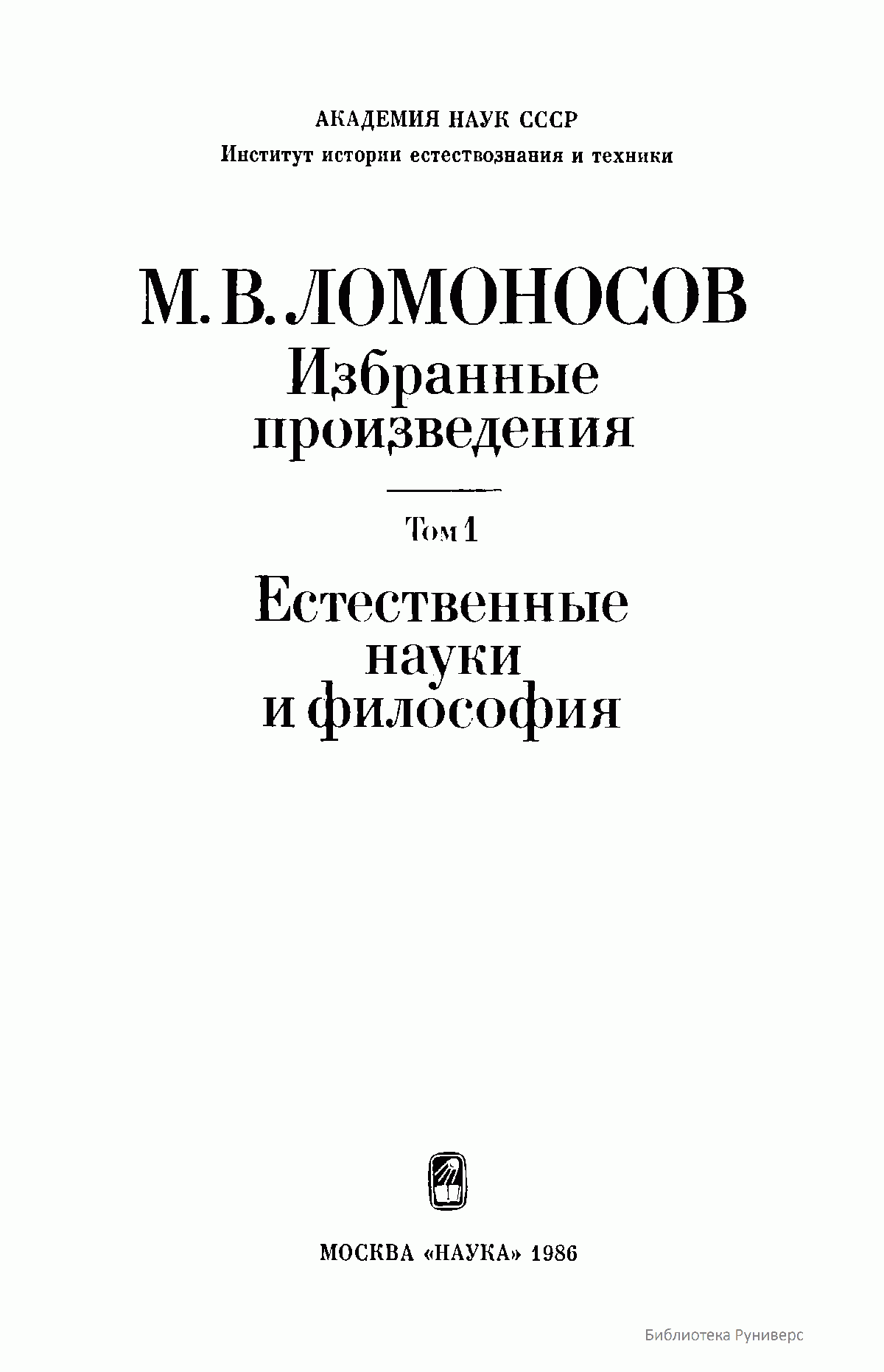 Том 1. Естественные науки и философия