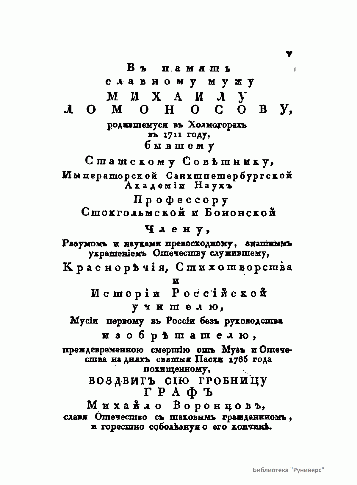 Письмо покойного Михаила Васильевича Ломоносова к Ивану Ивановичу Шувалову