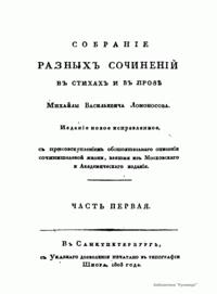 Собранiе разныхъ сочиненiй въ стихахъ и въ прозѣ Михайлы Васильевича Ломоносова