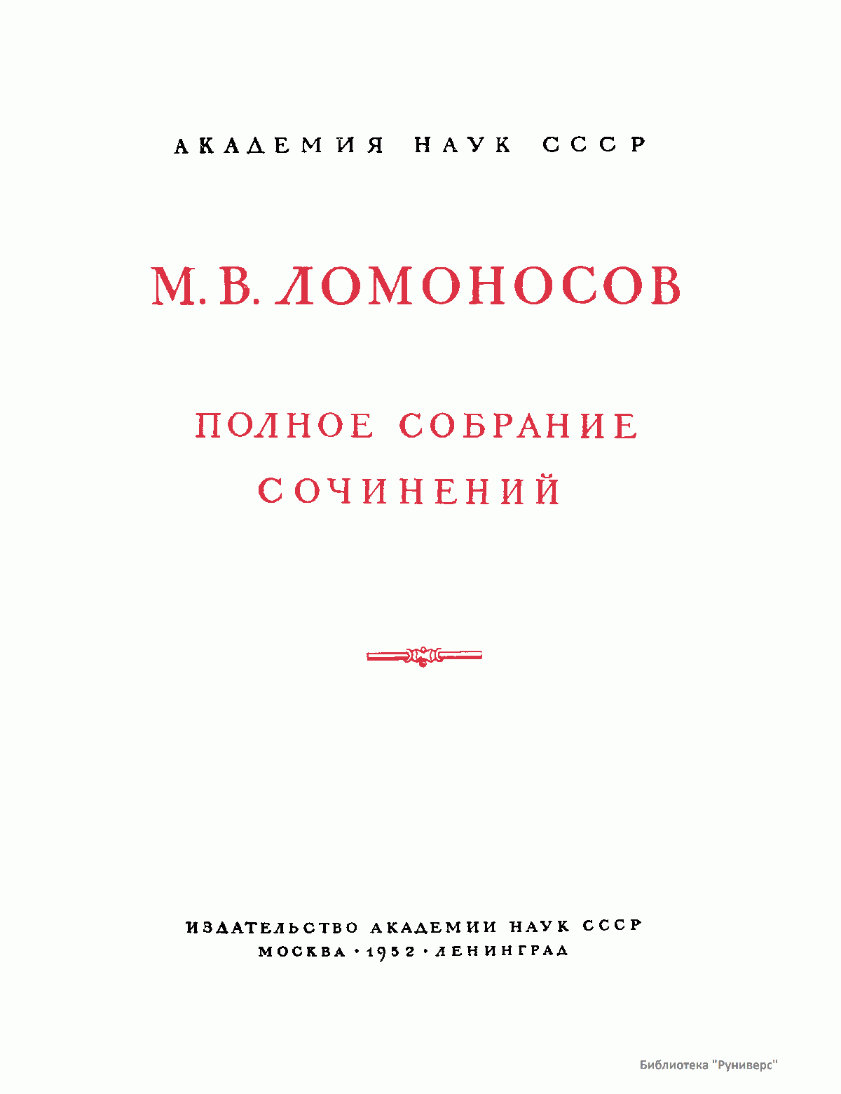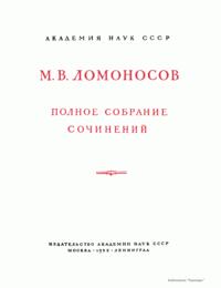 Михаил Васильевич Ломоносов – человек необъятных дарований и научной энергии, величайшей деятель культуры XVIII века, лучший продолжатель идей петровского времени. Ломоносов работал в области всех известных в его время наук и почти в каждой сделал замечательные открытия. Он был философом, физиком, химиком, металлургом, географом, биологом, астрономом, филологом одновременно. В этом отношении Ломоносов был последним представителем фаланги великих людей, выдвинутых во всей Европе эпохой Возрождения, людей типа Леонардо да Винчи или Галилея. Белинский так писал о Ломоносове: «Ослепительно и прекрасно было это явление. Оно доказало собой, что человек есть человек во всяком состоянии и во всяком климате, что гений умеет торжествовать над всеми препятствиями, какие ни противопоставит ему враждебная судьба, что, наконец, русский способен ко всему великому и прекрасному». Настоящее издание сочинений Ломоносова наиболее полное из всех. Оно подготовлено на основе большой работы ученых по разысканию, описанию и изучению разнообразного и богатейшего научного наследия Ломоносова. В издание включается несколько сот документов, не вошедших в последнее академическое издание и ранее не опубликованных. В число этих документов входит ряд статей и заметок научного значения, автобиографически документы, переводы и разнообразные служебные бумаги, характеризующие Ломоносова как выдающегося организатора русской науки и просвещения XVIII века. Особо следует отметить документы, относящиеся к деятельности Ломоносова как ученого-экспериментатора. Все публикуемые тексты сверены с первоисточниками – рукописями и прижизненными изданиями. В отдельных случаях, когда ни рукописей, ни прижизненных изданий не сохранилось, текст печатается по наиболее достоверному, критически изученному источнику. Произведения печатаются по новой орфографии с заменой пунктуации Ломоносова современной пунктуацией, но с сохранением, по возможности, всех особенностей, присущих языку Ломоносова. Все тексты, написанные на латинском языке, печатаются одновременно на языке оригинала и в русском переводе. Произведения Ломоносова распределены по разделам его деятельности. Каждому разделу посвящен один том или несколько томов, в зависимости от объема материала. В пределах каждого тома произведения расположены хронологически по времени их написания или публикации. Некоторые отступления от этого принципа сделаны лишь в отдельных случаях, когда это вызывалось необходимостью сохранить органическую связь между однородными произведениями. В отличие от старых изданий сочинений Ломоносова, в которых при распределении материала сначала печатались художественные произведения и филологические труды, в настоящем издании первые тома посвящены научным трудам по физике, химии и другим естественным наукам. В конце каждого тома даются краткие примечания справочного характера к опубликованным в томе работам и указатель личных имен. Настоящее полное собрание сочинений Ломоносова осуществляется Главной редакцией издания при непосредственном участии Комиссии по истории Академии Наук СССР, архива Академии Наук СССР и приглашенных специалистов.