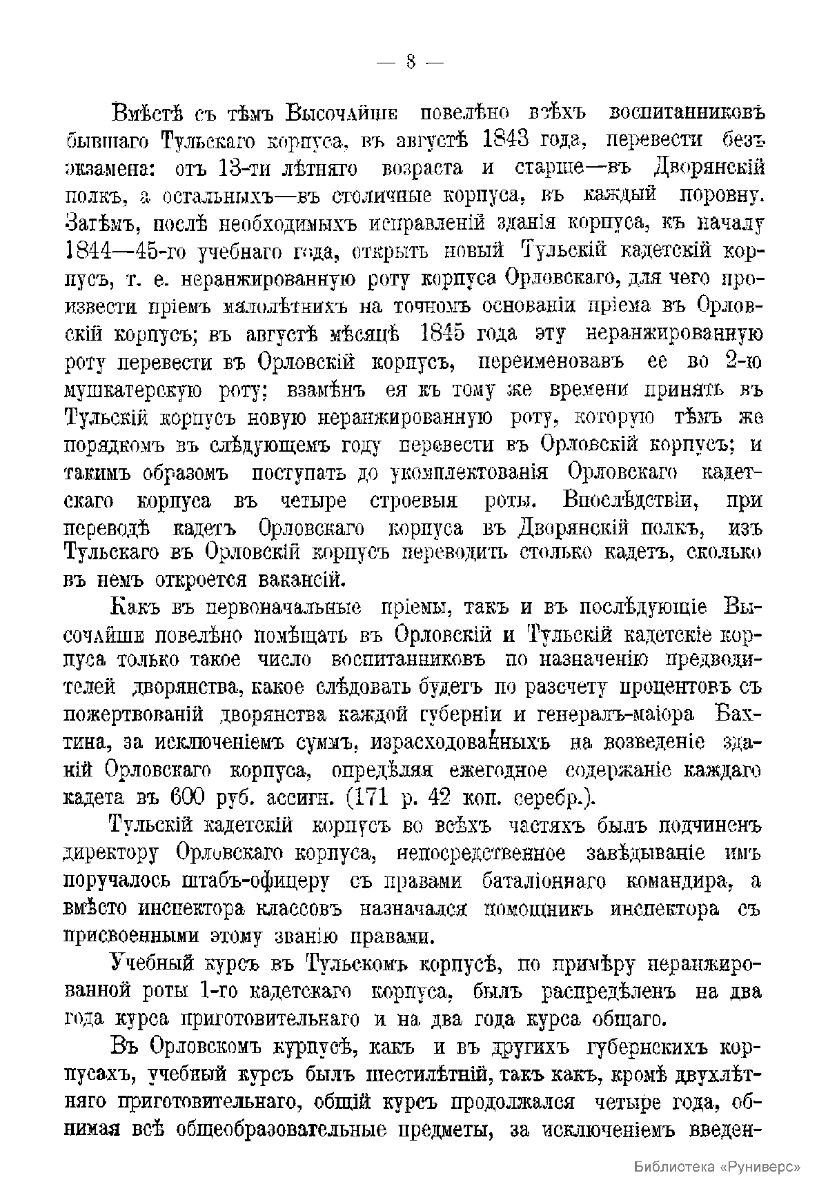 Краткий исторический очерк Орловского-Бахтина кадетского корпуса, с приложением списка бывших воспитанников этого корпуса, окончивших курс за время первого пятидесятилетия со дня его открытия. (1843-1893 гг.)