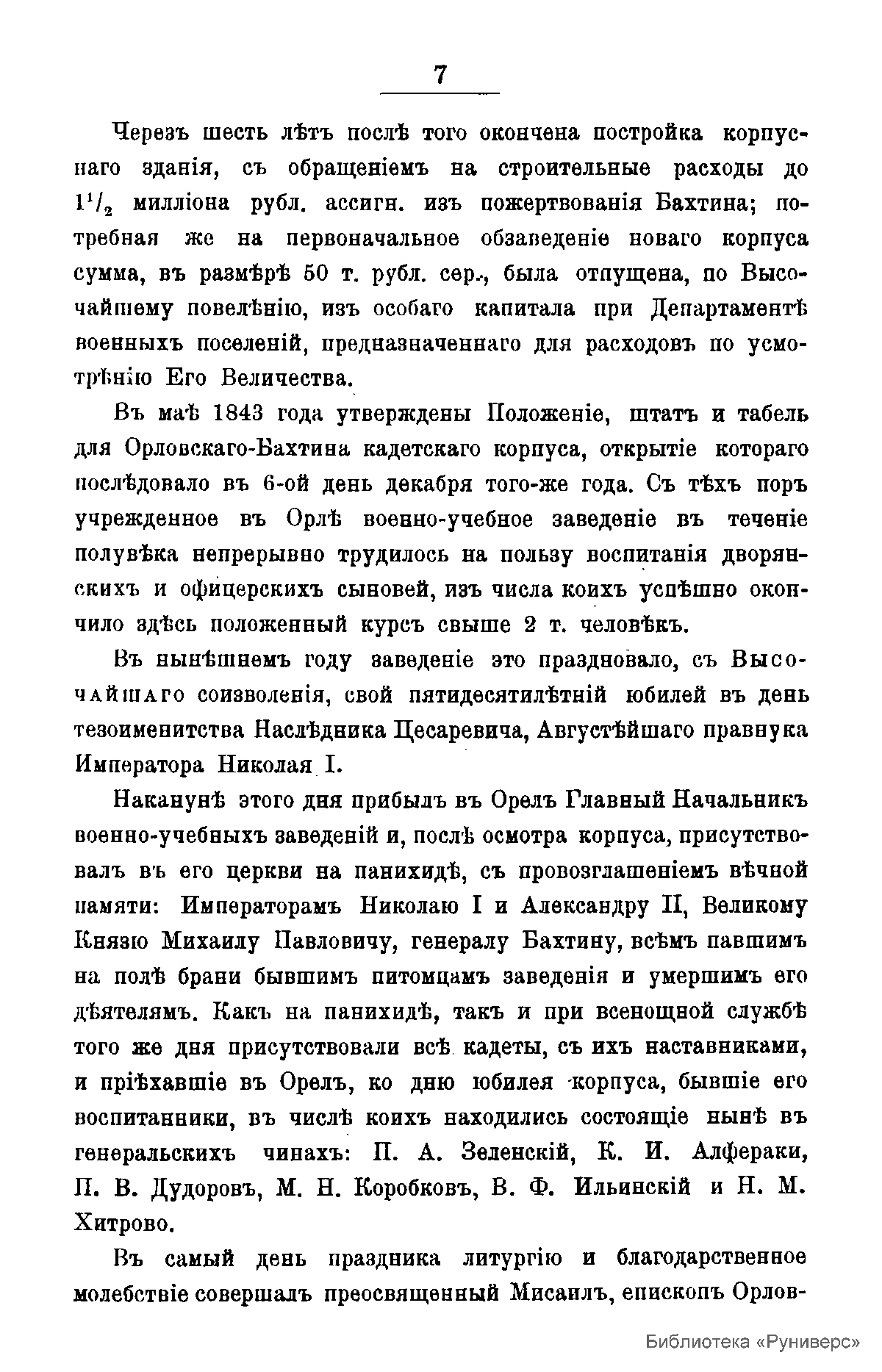 Пятидесятилетие Орловского-Бахтина кадетского корпуса. 1843-1893