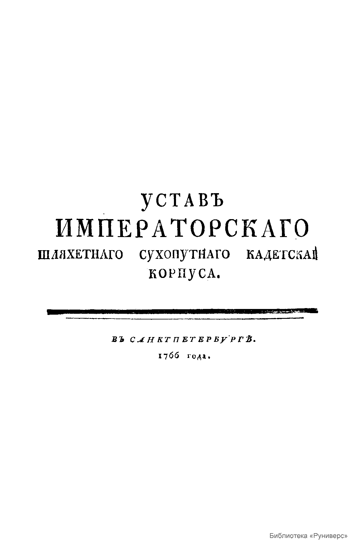 Уставъ императорскаго Шляхетнаго сухопутнаго кадетскаго корпуса