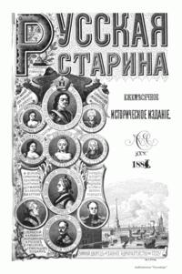 «Русская старина», ежемесячный исторический журнал, выходил в Петербурге в 1870-1918. Основан, издавался и редактировался (1870-1892) М. И. Семевским при участии В. И. Семевского. Последующими редакторами были Н. К. Шильдер (1892-1896), Н. Ф. Дубровин (1896-1904), военные историки С. П. Зыков, П. Н. Воронов.