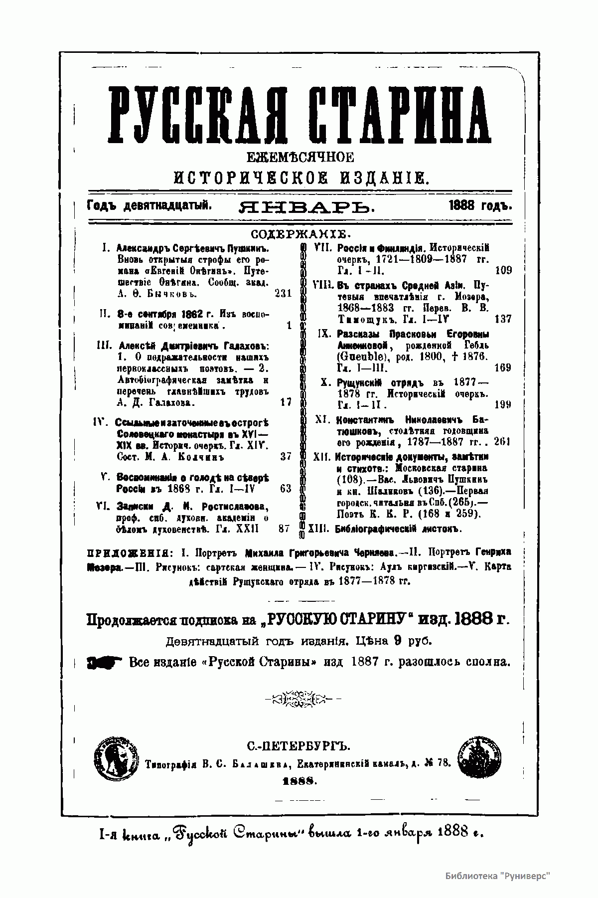 Русская cтарина. Том LVII. 1888. Выпуски 1-3