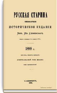 «Русская старина», ежемесячный исторический журнал, выходил в Петербурге в 1870-1918. Основан, издавался и редактировался (1870-1892) М. И. Семевским при участии В. И. Семевского. Последующими редакторами были Н. К. Шильдер (1892-1896), Н. Ф. Дубровин (1896-1904), военные историки С. П. Зыков, П. Н. Воронов.