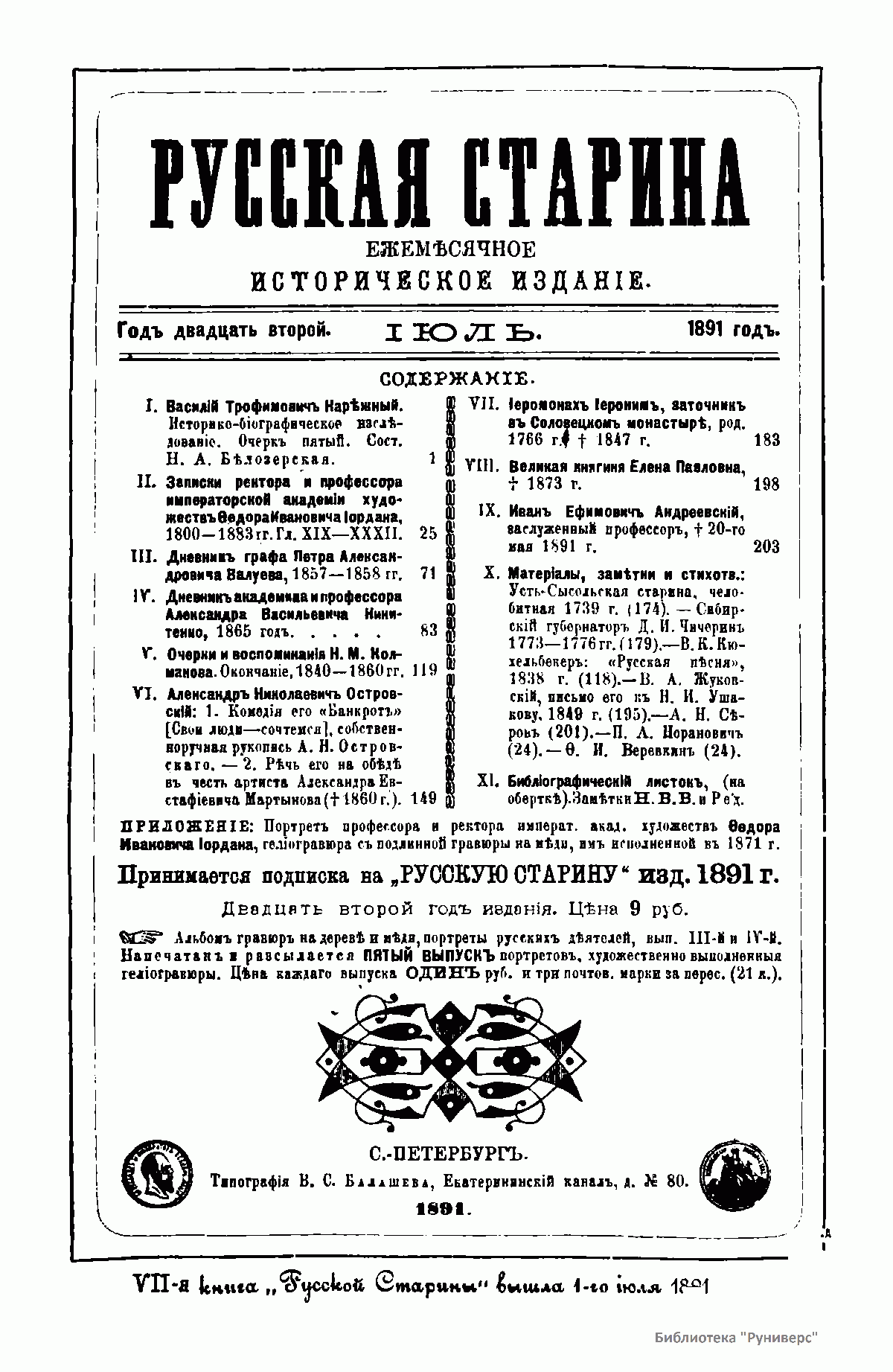 Русская cтарина. Том LXXI. 1891. Выпуски 7-9