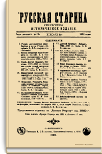 «Русская старина», ежемесячный исторический журнал, выходил в Петербурге в 1870-1918. Основан, издавался и редактировался (1870-1892) М. И. Семевским при участии В. И. Семевского. Последующими редакторами были Н. К. Шильдер (1892-1896), Н. Ф. Дубровин (1896-1904), военные историки С. П. Зыков, П. Н. Воронов.