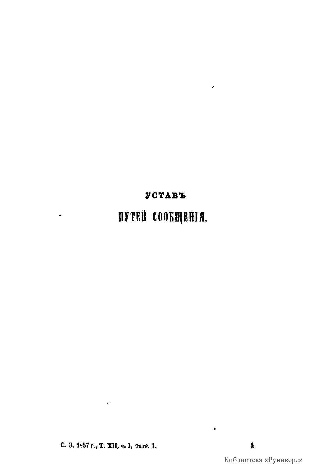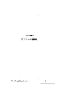 Сводъ законовъ Россiйской имперiи. Томъ двѣнадцатый. Часть I. Уставы путей сообщенiя, почтовый, телеграфическiй, строительный, и пожарный