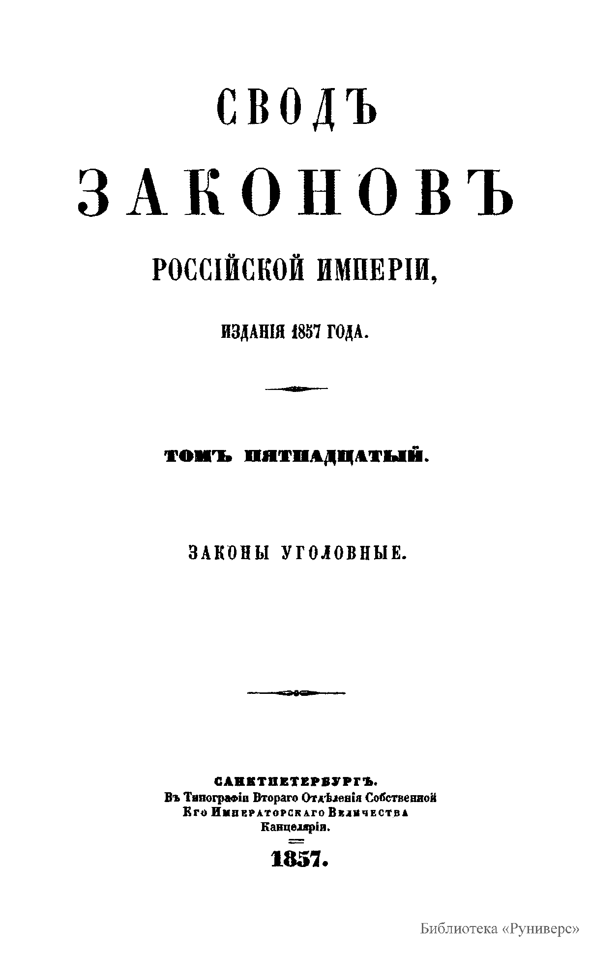 Сводъ законовъ Россiйской имперiи. Томъ пятнадцатый. Законы уголовные