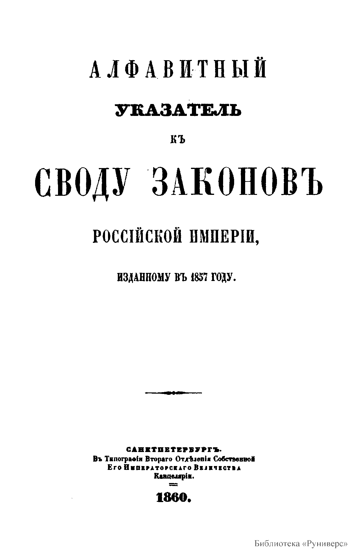 Алфавитный указатель к своду законовъ Россiйской имперiи, изданному въ 1857 году