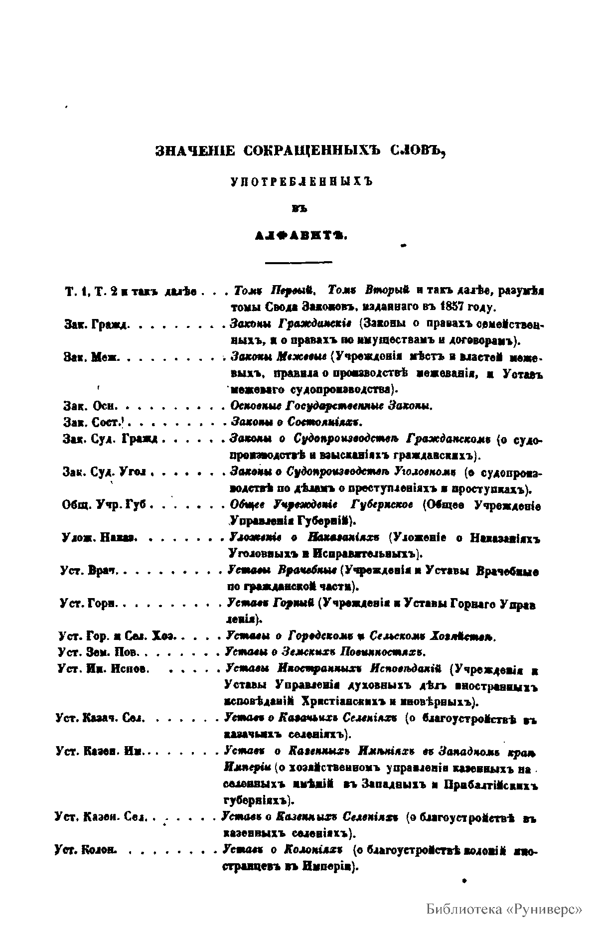 Алфавитный указатель к своду законов Российской империи, изданному в 1857 году