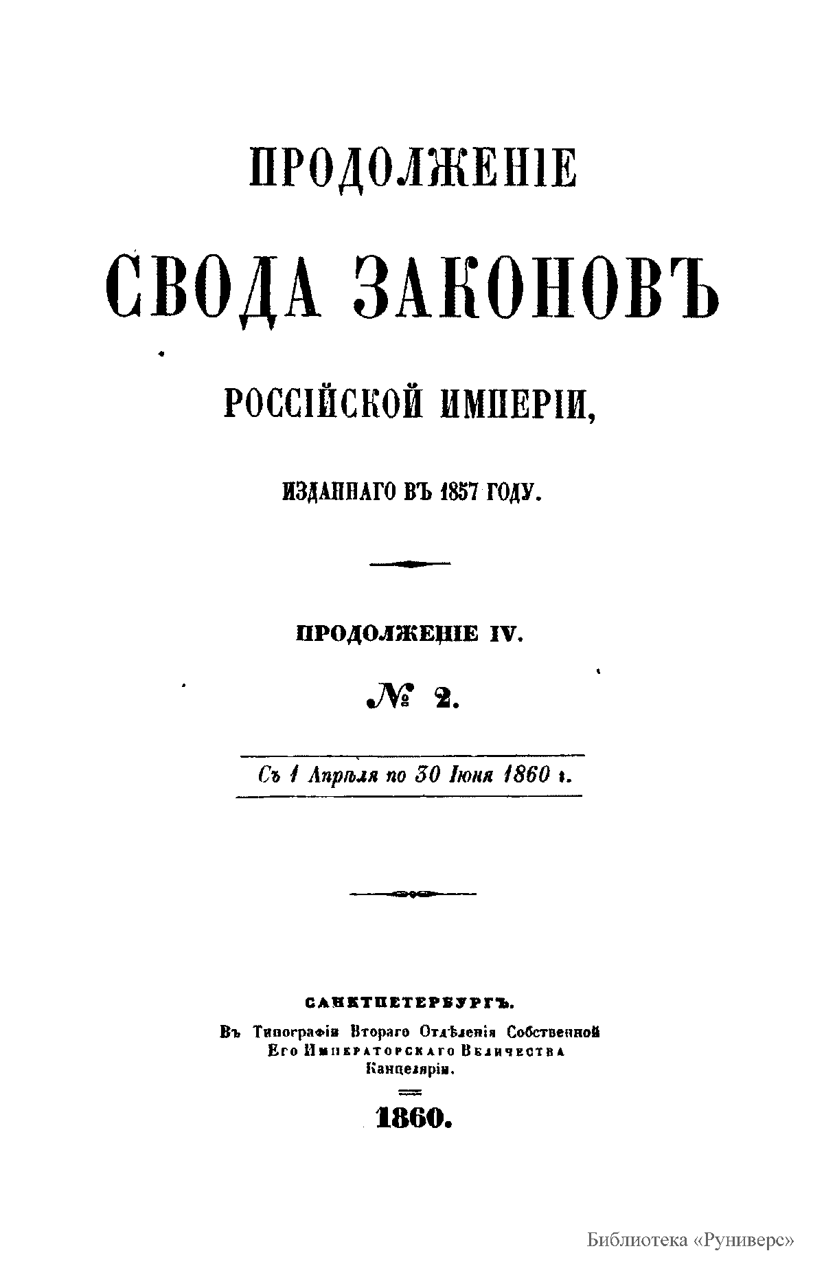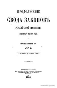 Продолжение свода законов Российской империи, изданного в 1857 году. Продолжение №IV. №2. С 1 апреля по 31 июня 1860 года