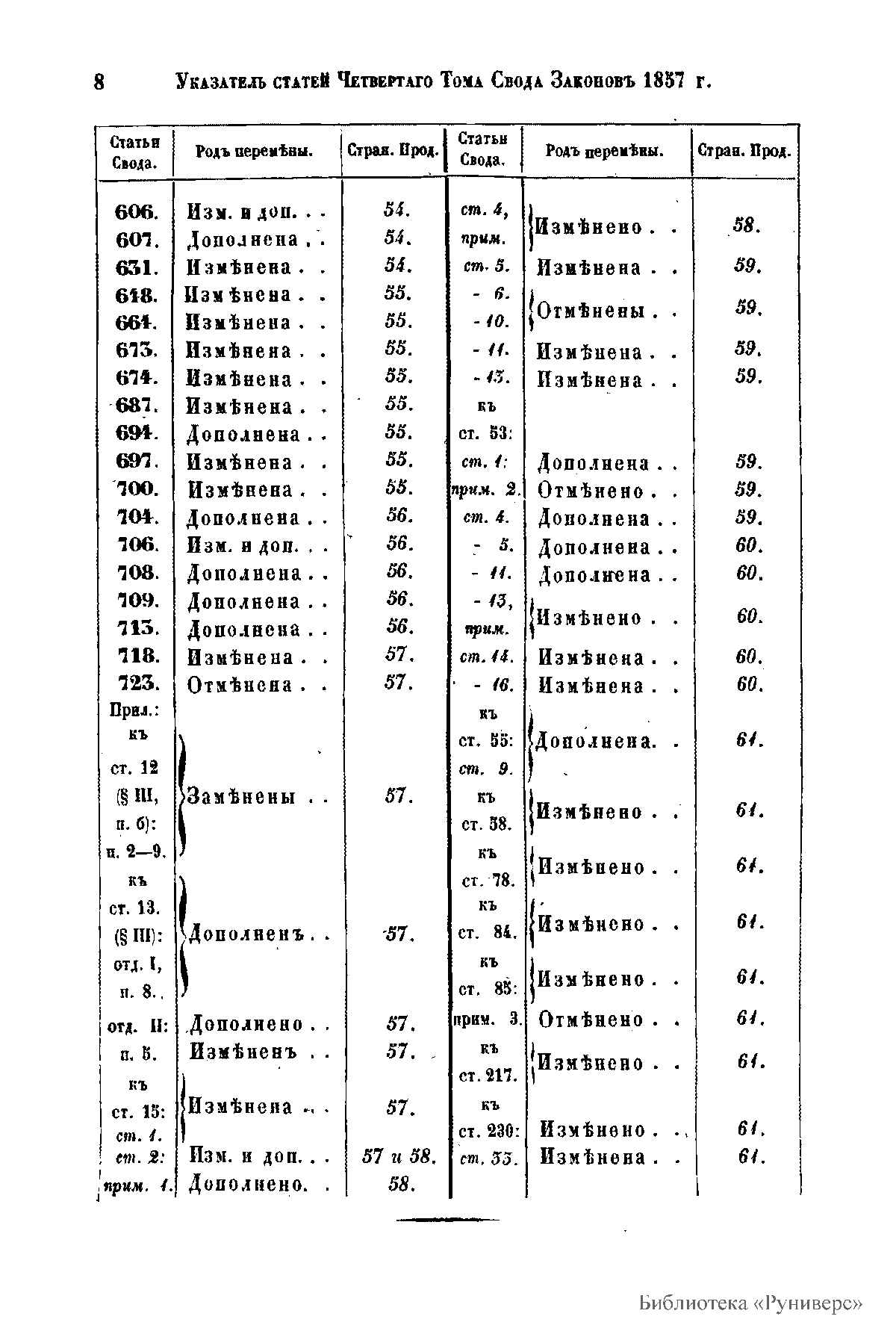 Продолжение свода законов Российской империи, изданного в 1857 году. По 31 мая 1863 года. Часть II. Статьи к IV, V, VII, VIII томам свода