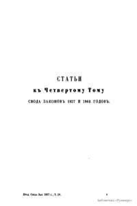 Продолженiе свода законовъ Россiйской имперiи, изданнаго въ 1857 году. По 31 марта 1863 года. Часть II. Статьи къ IV, V, VII, VIII томамъ свода