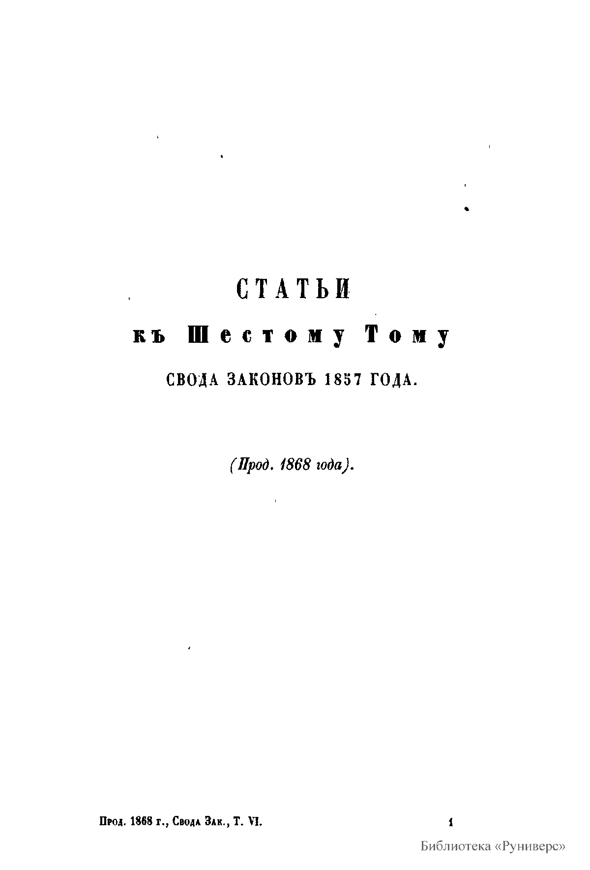Продолженiе свода законовъ Россiйской имперiи, изданнаго въ 1857 году. Съ 1 января 1864 по 31 декабря 1867 года. Часть II. Статьи къ VI, VII, VIII и IX томамъ свода