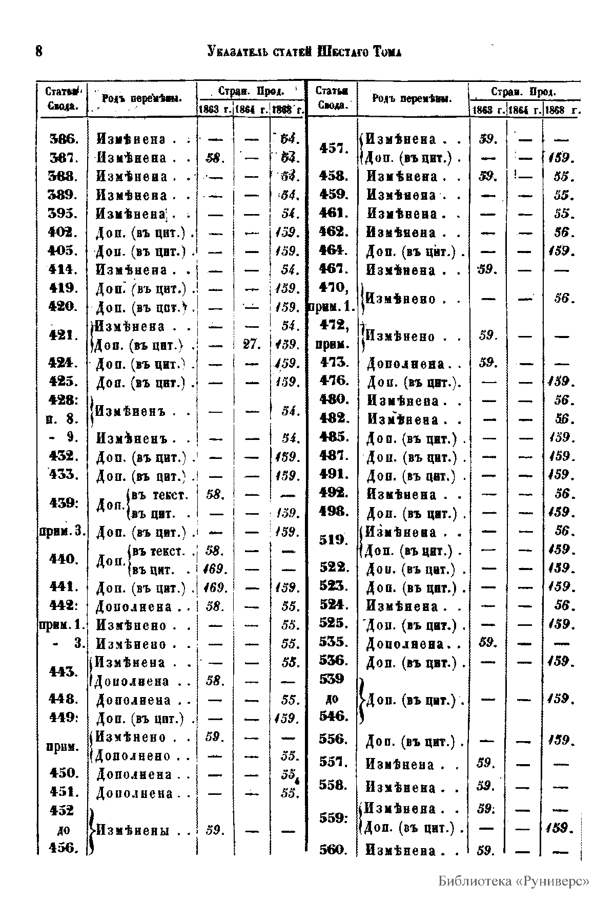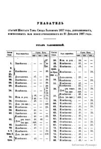 Продолжение свода законов Российской империи, изданного в 1857 году. С 1 января 1864 по 31 декабря 1867 года. Часть II. Статьи к VI, VII, VIII и IX томам свода