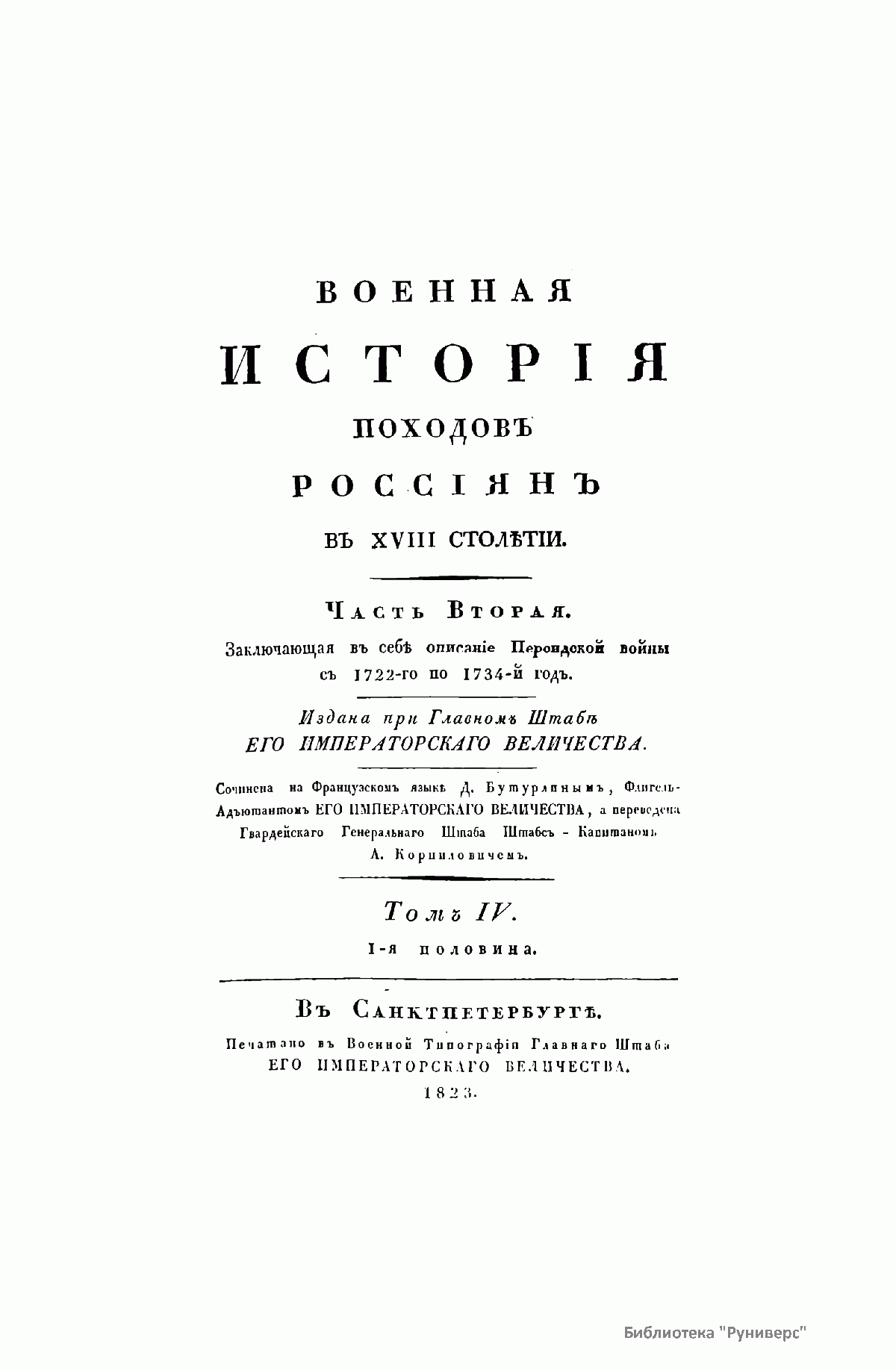 Военная история походов россиян в XVIII столетии. Часть вторая. Том IV. 1-я половина
