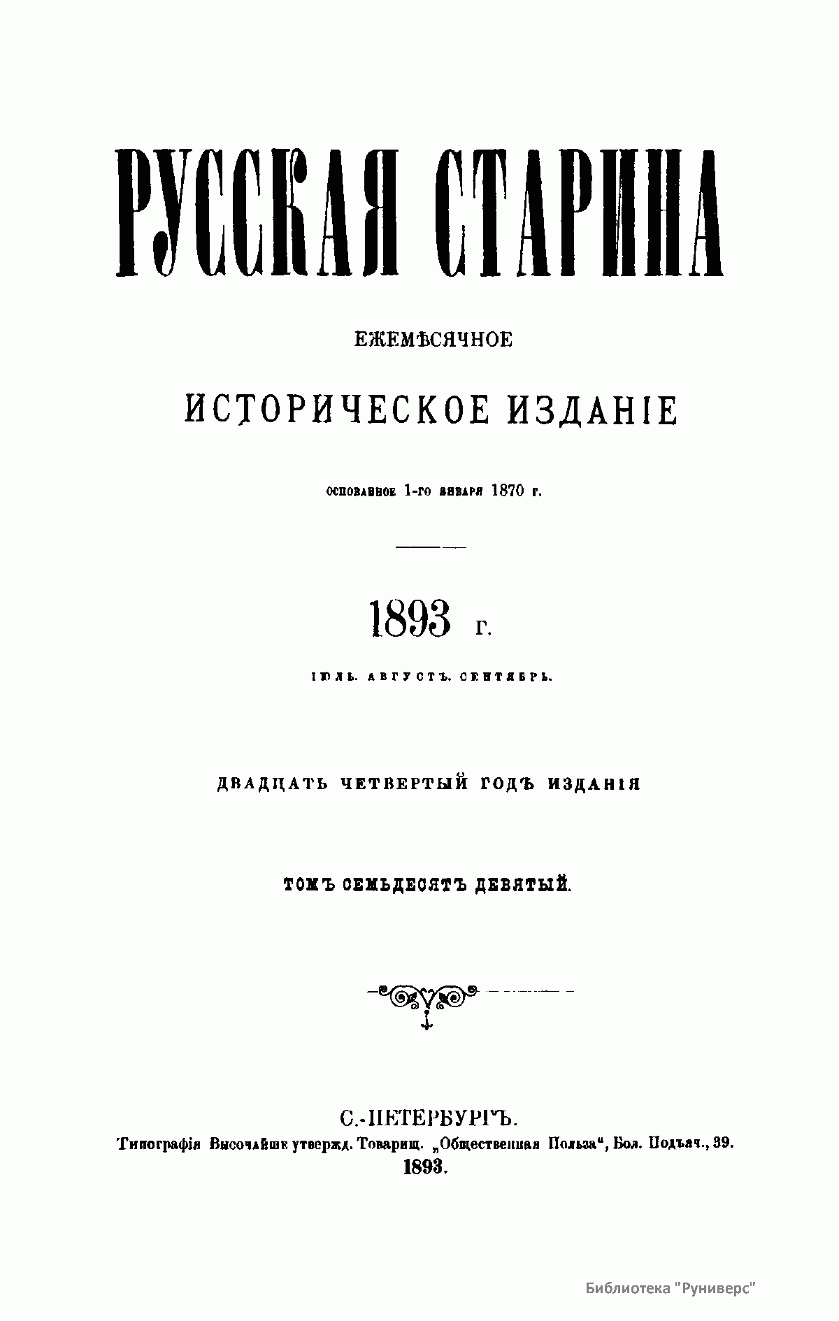 Русская старина. Том LXXIX. 1893. Выпуски 7-9