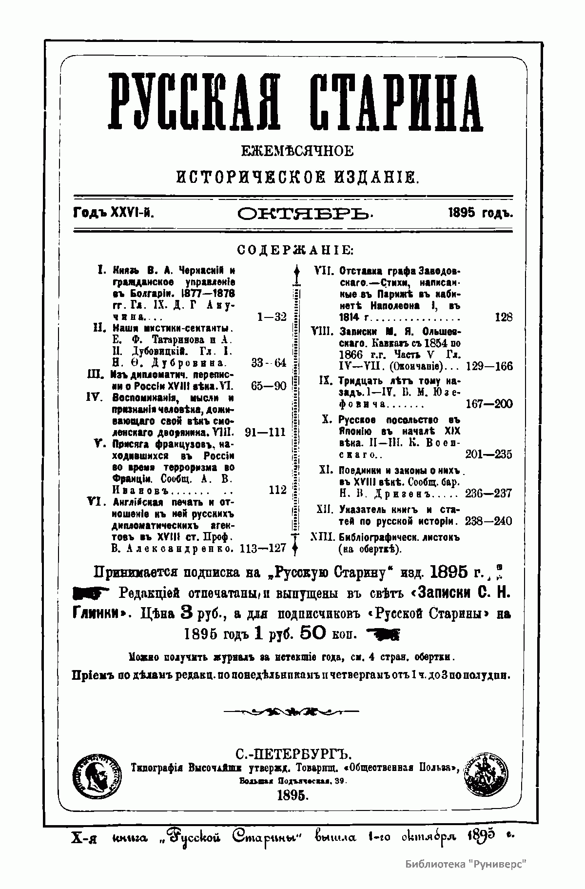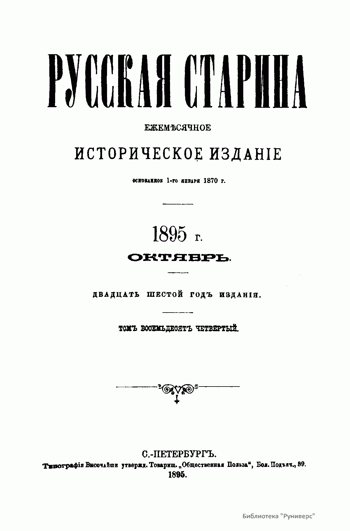 Русская старина. Том LXXXIV. 1895. Выпуски 10-12