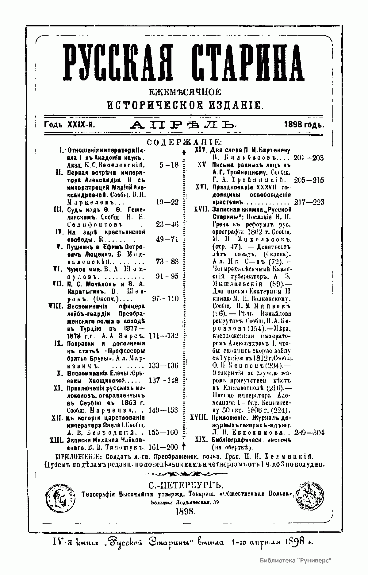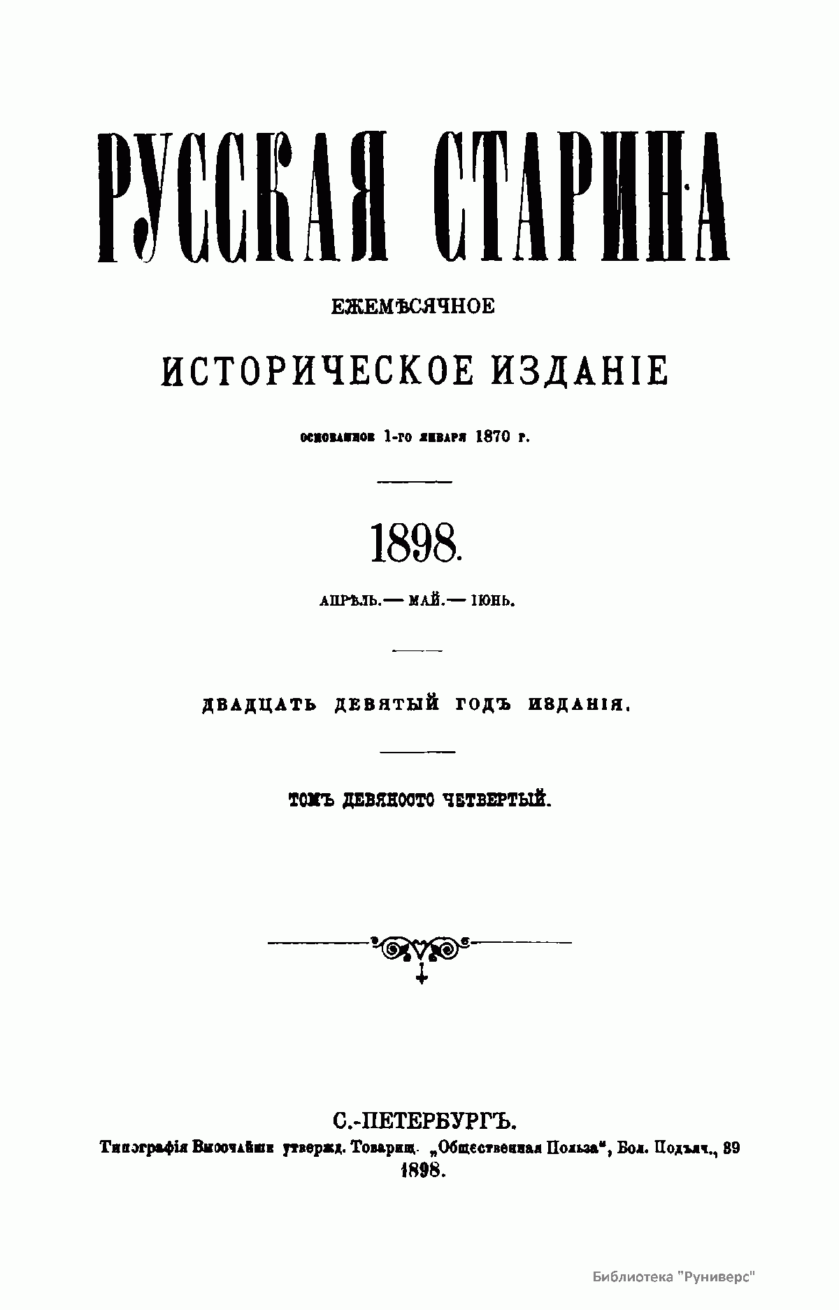 Русская старина. Том XCIV. 1898. Выпуски 4-6