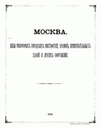 Москва. Соборы, монастыри и церкви. Виды нѣкоторыхъ городскихъ мѣстностей, храмовъ, примѣчательныхъ зданiй и другихъ сооруженiй