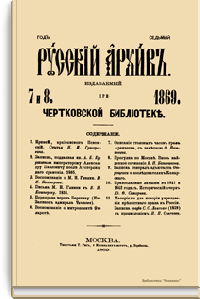 «Русский архив» — ежемесячный историко-литературный журнал, издававшийся в Москве с 1863 по 1917 год. Создателем и продолжительные годы редактором журнала был П. И. Бартенев – историк, археограф, библиограф. Этот журнал называли «живой картиной былого», поскольку он содержал преимущественно публикации неизданных мемуарных, эпистолярных, литературно-художественных и ведомственных документальных материалов, освещавших культурную и политическую историю России в XVIII и XIX вв. По числу опубликованных источников «Русский архив» стоит на первом месте среди русских исторических журналов.
