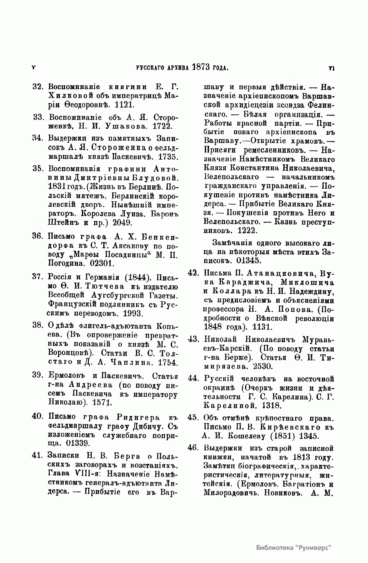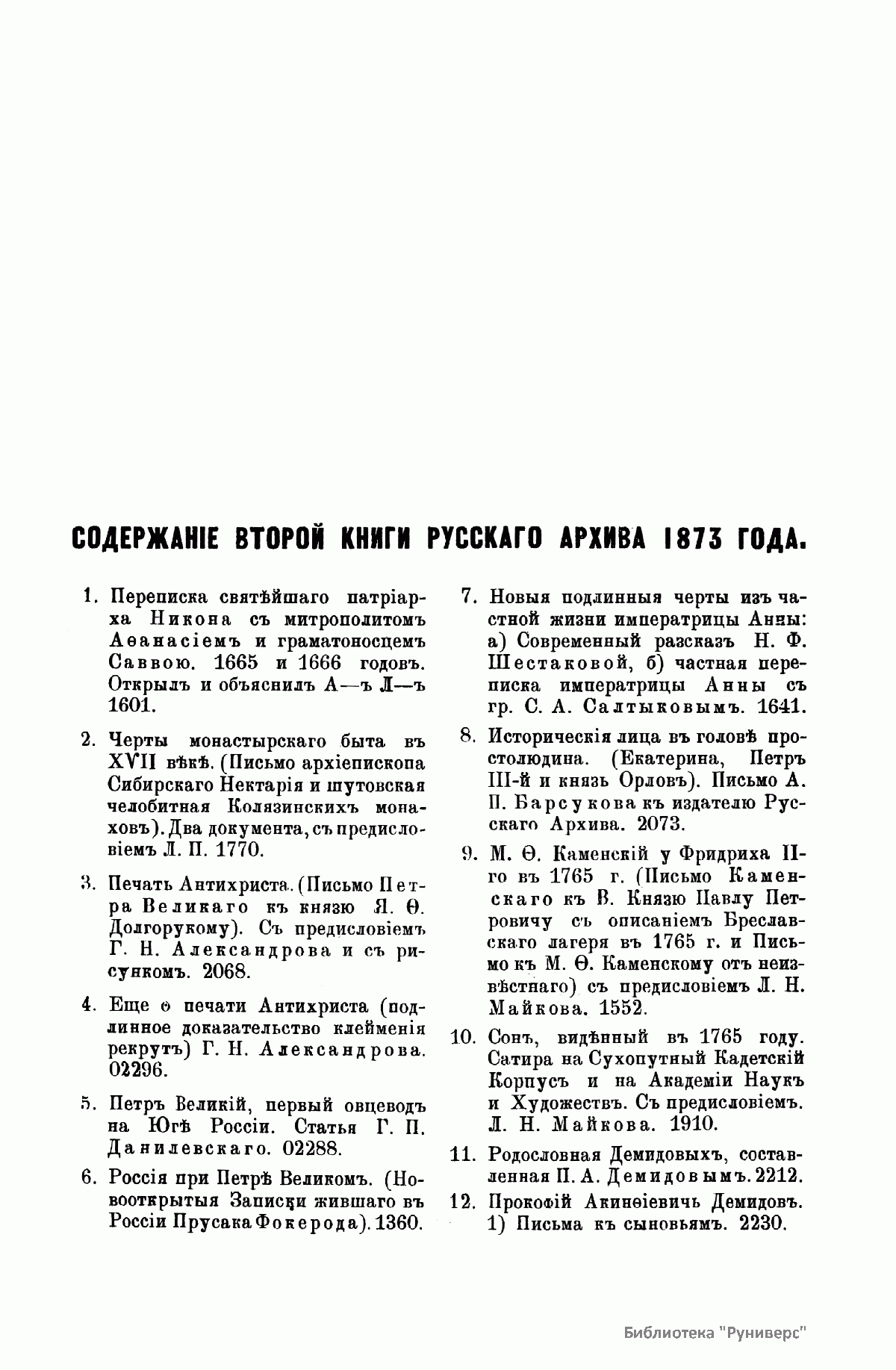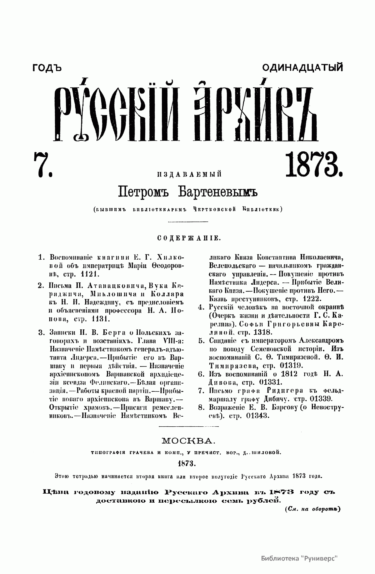 Русскiй архивъ. Историко-литературный сборникъ. 1873. Выпуск 7-12