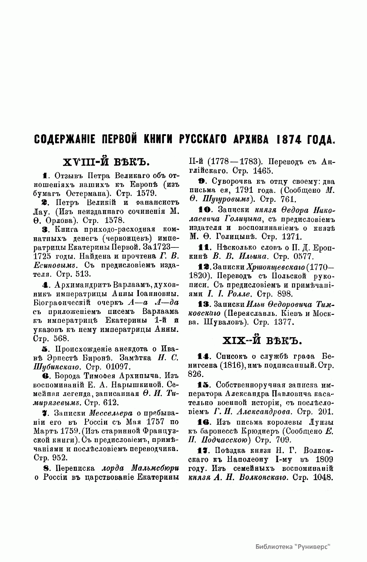 Русскiй архивъ. Историко-литературный сборникъ. 1874. Выпуски 1-4